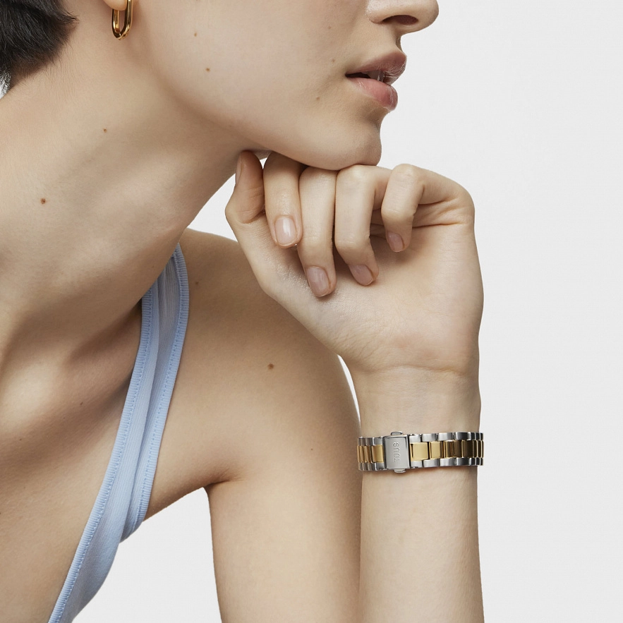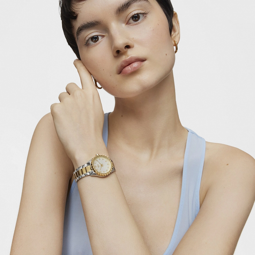 Годинник TOUS Mini T-Bear з браслетом і корпусом з нержавіючої сталі та IPG-сталі золотистого кольору. Мінерал: плаский, круглий. Діаметр: 31,2 мм. Безель з рельєфними ведмедиками. Функції: години, хвилини і секунди. Водонепроникність до 5 АТМ. Батарейка: 1.55 В, оксид срібла SR626SW / 0.4 грама. Калібр: MIYOTA 2035. Японський кварцевий механізм. Застібка-метелик.