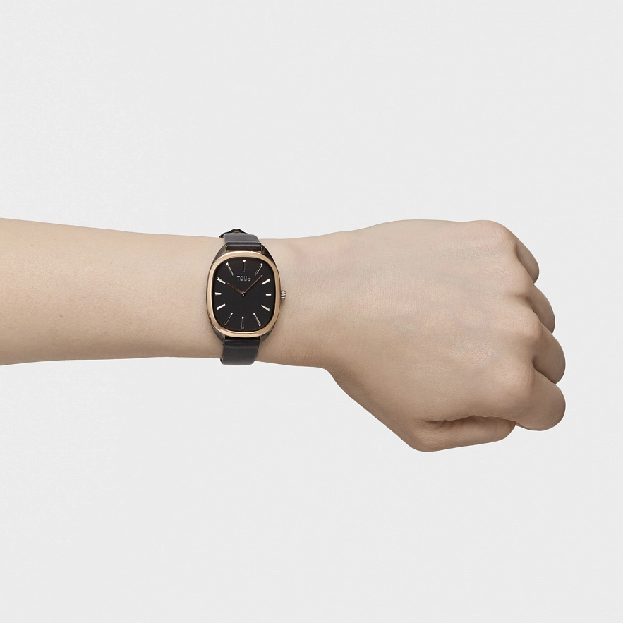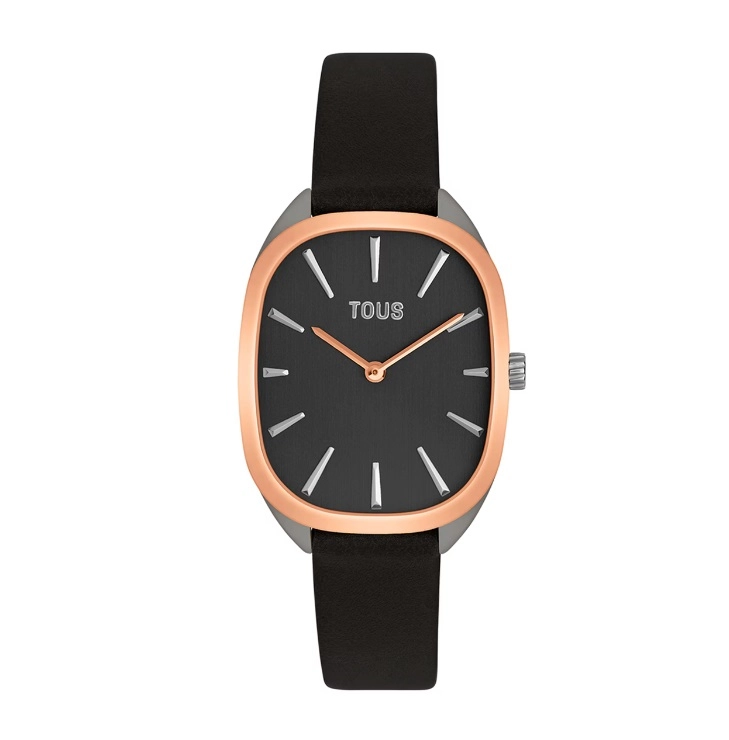 Годинник TOUS Heritage з колекції 1950 з нержавіючої сталі з чорним шкіряним ремінцем, мінеральне скло. Водонепроникність до 3 ATM.