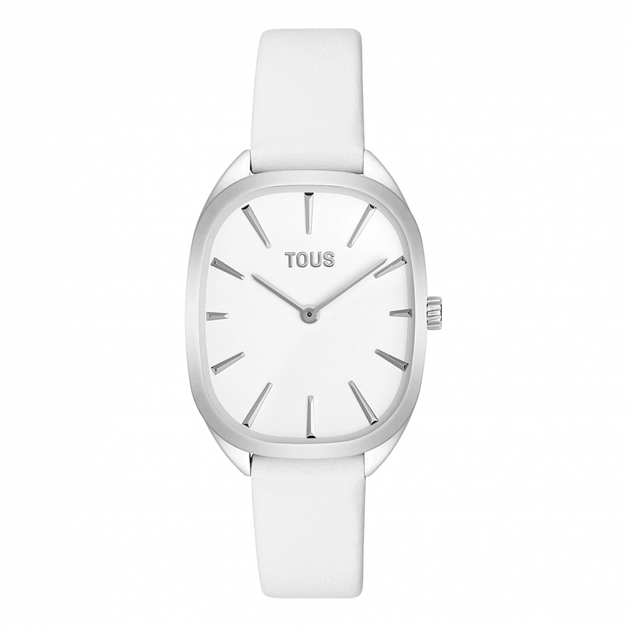 Годинник TOUS Heritage з колекції 1950 з нержавіючої сталі з білим шкіряним ремінцем, мінеральне скло. Водонепроникність Функції: години та хвилини.