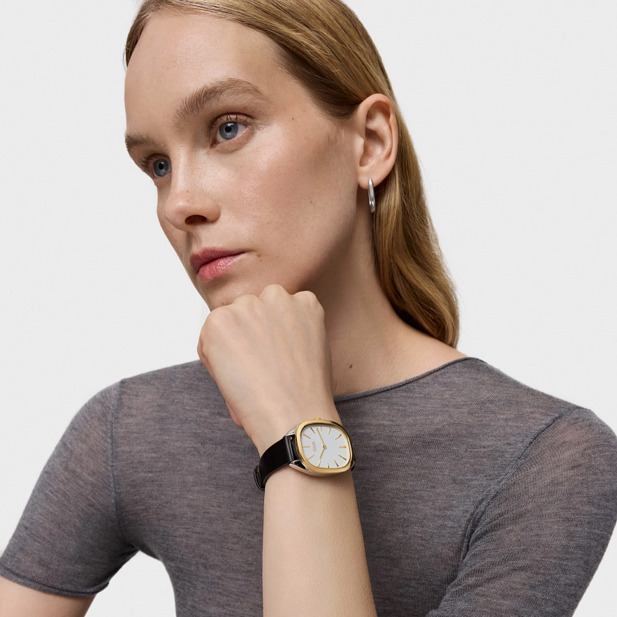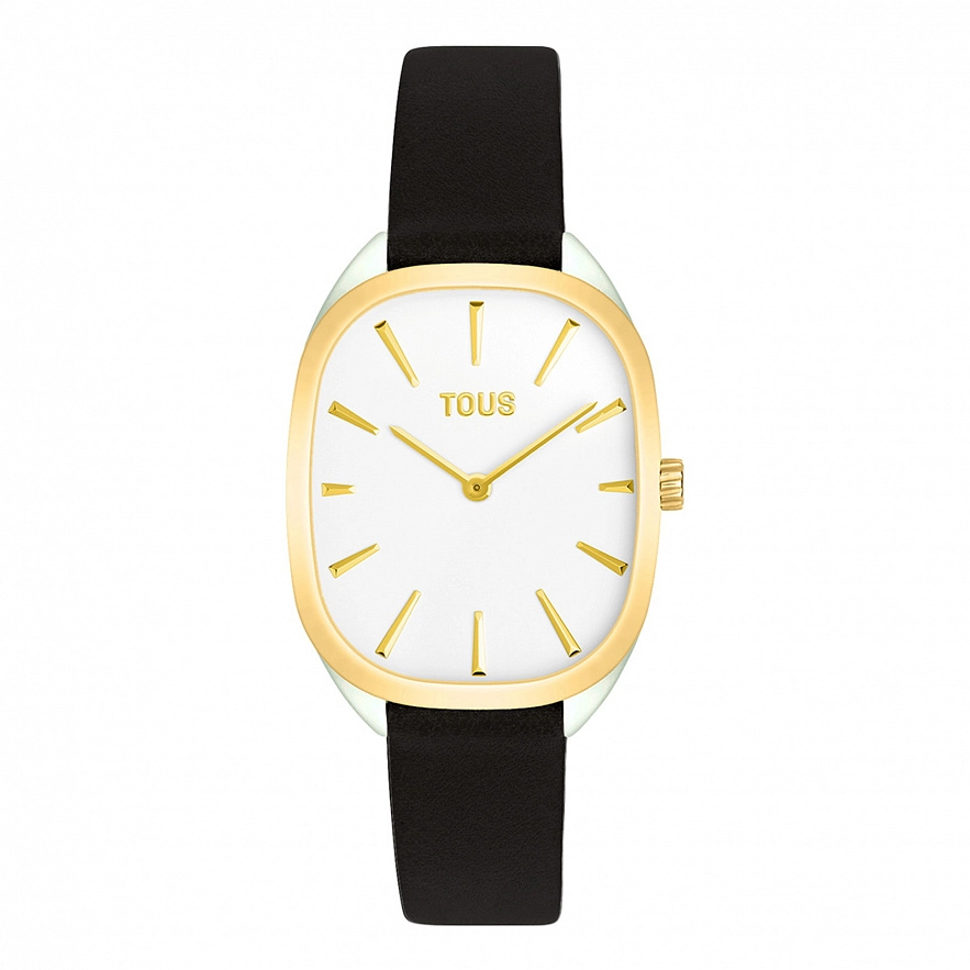 Годинник TOUS Heritage з колекції 1950 з IP-золотим корпусом з нержавіючої стіалі з чорним шкіряним ремінцем, мінеральне скло. Водонепроникність до 3 атм.