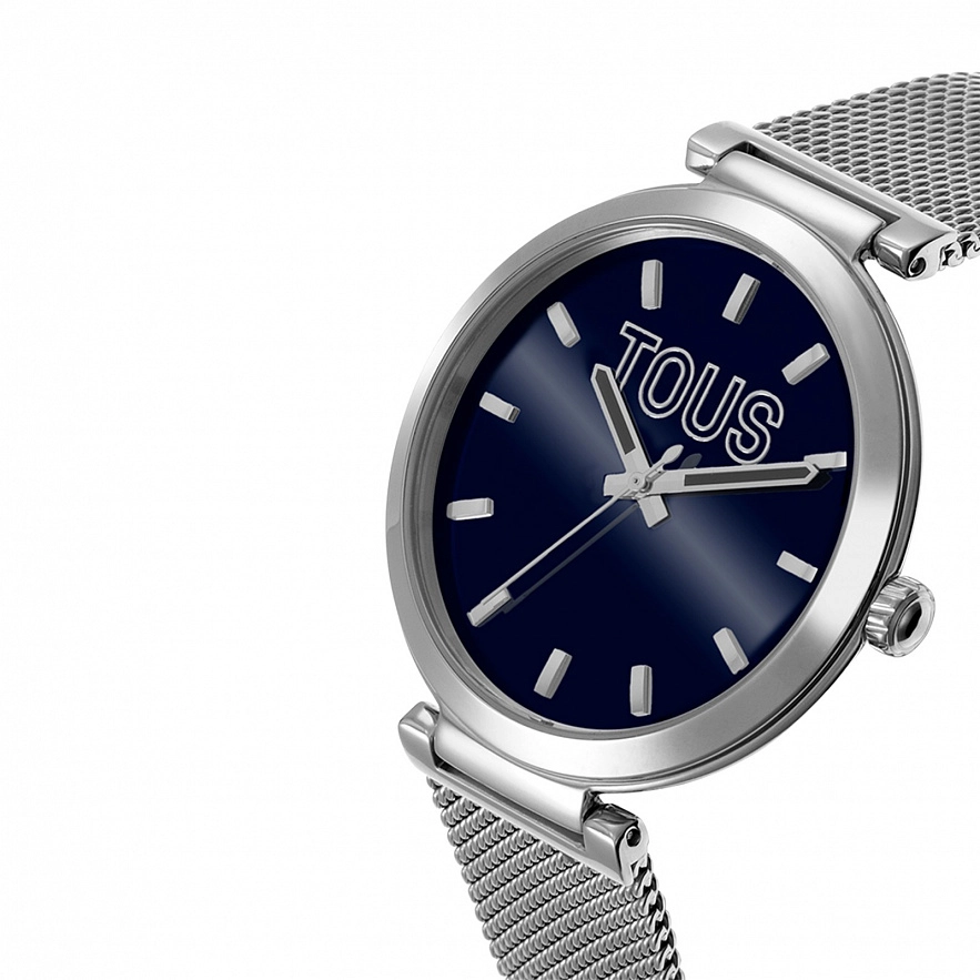 Годинник TOUS S-Mesh Mirror з браслетом і корпусом з нержавіючої сталі. Діаметр корпусу: 36 мм. Циферблат: з синім дзеркальним ефектом. Функції: годинник, хвилини і секунди. Механізм: аналоговий японський кварц. Водонепроникний: 5 ATM. Браслет: 65 мм х 18 мм х 16 мм / 105 мм х 18 мм х 16 мм. Міланська сітка із захисною застібкою.