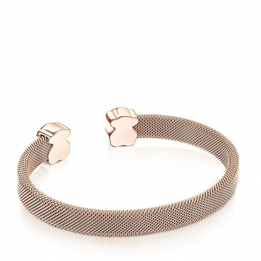 Браслет TOUS Icon Mesh зі сталі з рожевим IP-покриттям, з двома вставками з оніксу, обрамлених сріблом 925 проби з рожевим покриттям Vermeil . Розмір вставки: 1,1 см. Ширина браслету: 8 мм. Vermeil : срібло з покриттям рожевого золота 18kt.