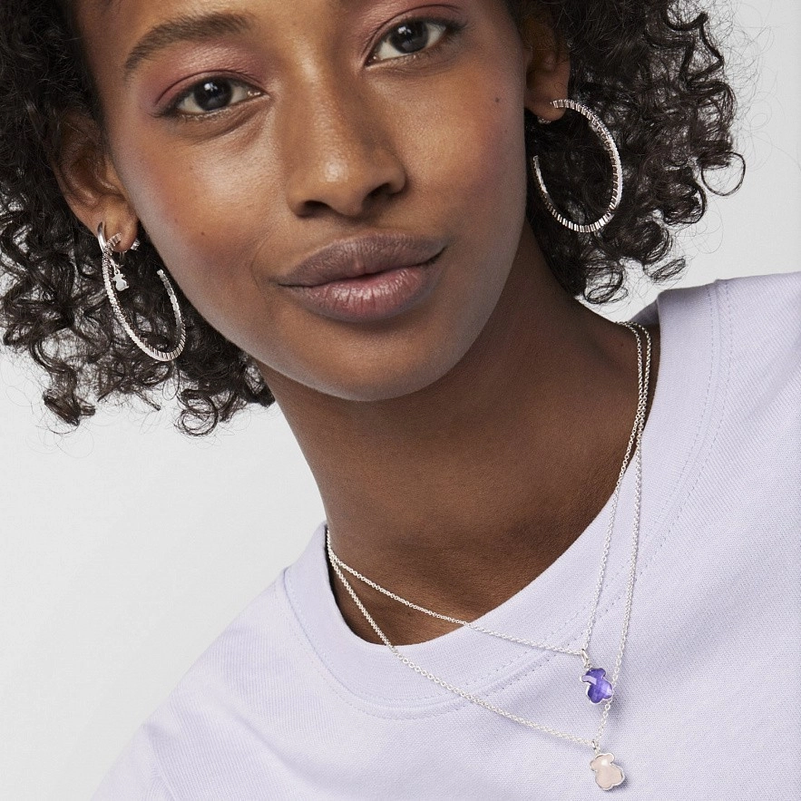 Ланцюг і кулон TOUS Icon Color зі срібла 925 проби розмір кулона - 1.1 см. Вставка - аметист. Довжина ланцюга - 45 см, з кільцем на 40 см.