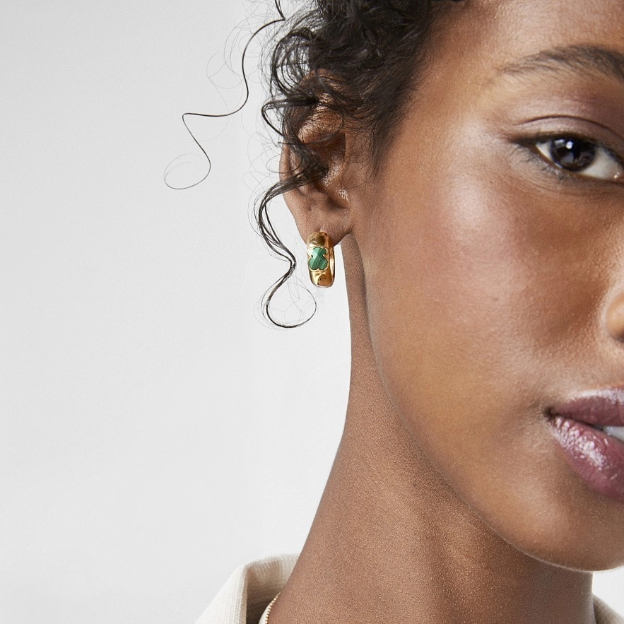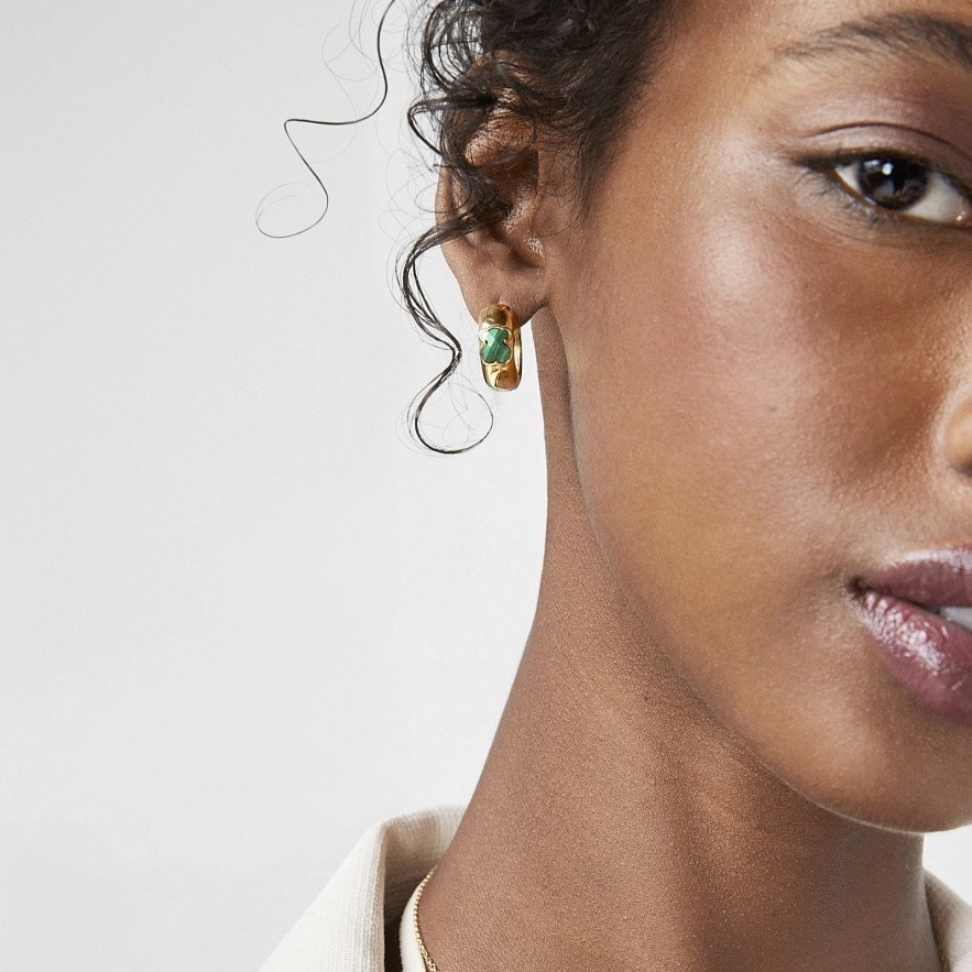 Маленькі сережки Icon Color із срібла 925 проби з покриттям Vermeil . Вставка - малахіт у формі ведмежати роміром 1.6 см. Англійська застібка.Vermeil : срібло з покриттям золота 18 карат.
