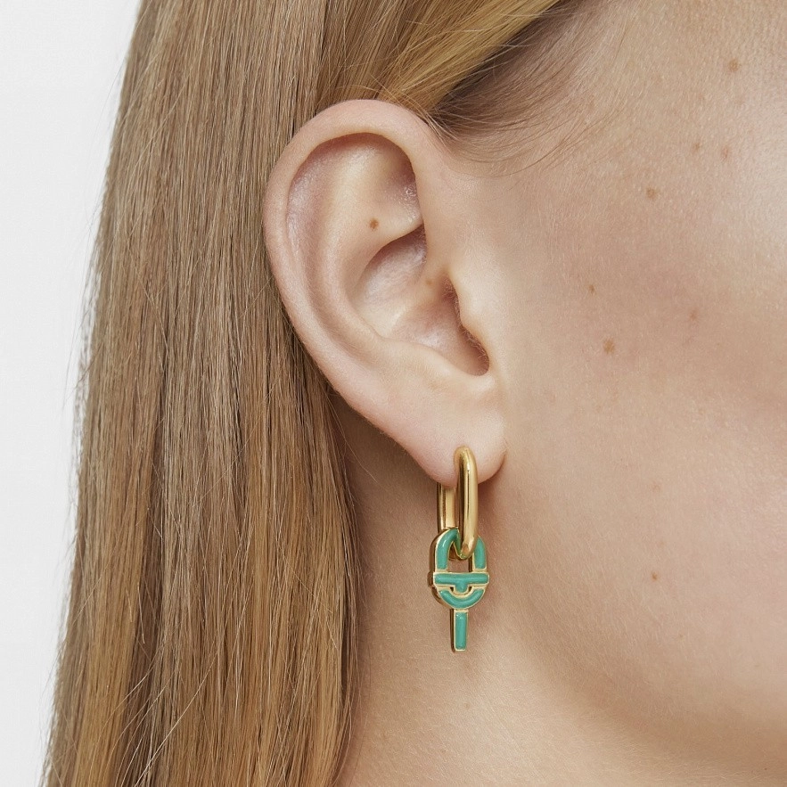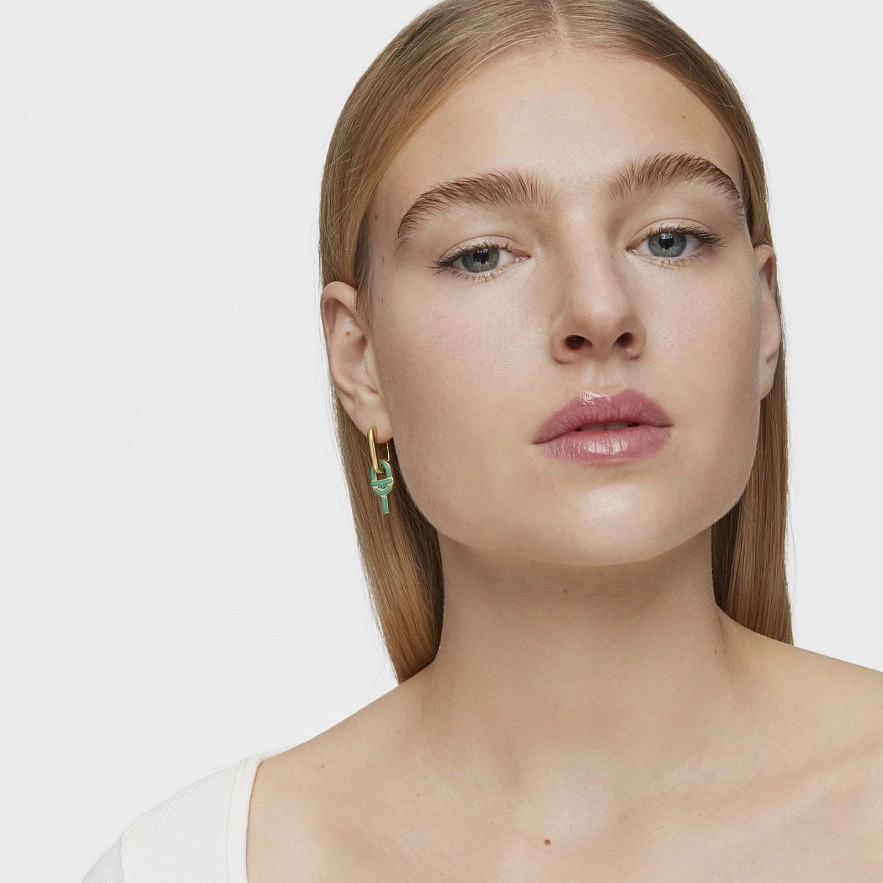 Сережка-кільце TOUS Manifesto зі срібла 925 проби з покриттям Vermeil та підвіскою-шармом з емаллю зеленого кольору. Розмір сережки:1 2,4 х 6,5 мм. Розмір мотиву: 19,5 мм. Примітка: емаль нанесена вручну.
