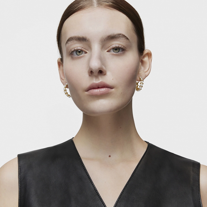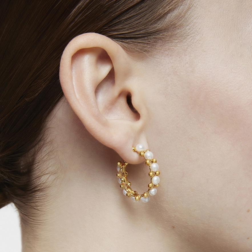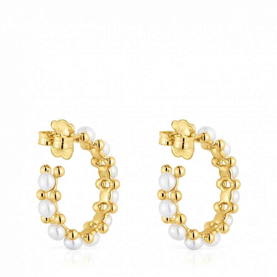Сережки-кільця TOUS Gloss зі срібла 925 проби з покриттям Vermeil , з трьома смужками, по центру смужка з культивованих прісноводних перлин. Розмір культивованої перлини: 4 мм. Діаметр сережки: 20 мм.