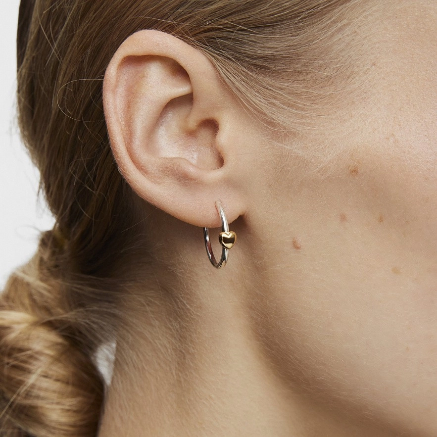Сережки-кільця My Other Half двокольорові зі срібла 925 проби та з мотивом серце, зі срібла 925 проби покрите золотом 18 карат.