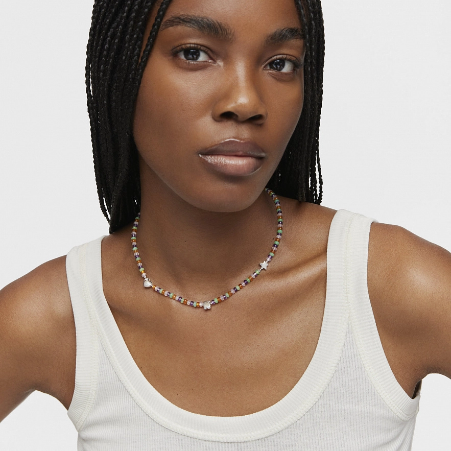 Намисто TOUS Bold Motif зі срібла 925 проби з дорогоцінними каменями та мотивами. Мотиви: серце, ведмедик та зірка. Оброблені камені: аметист, зелений халцедон, рожевий халцедон та помаранчевий халцедон. Розмір каміння: 4 х 2 мм. Розмір мотивів: 8 мм. Довжина кольє: 42 см. Застібка - лобстер.