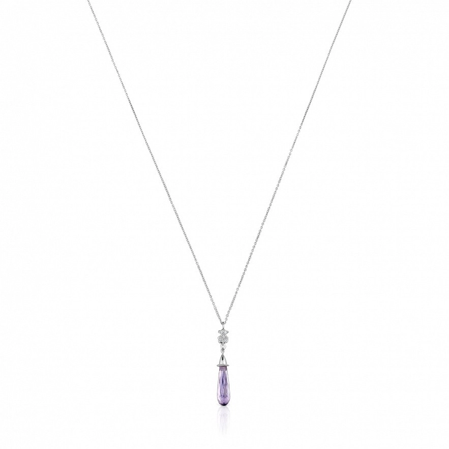 Намисто коротке TOUS Grain з білого золота 18 карат з діамантами 0,016 карата, мотивом ведмедя й аметистом з огранкою. Розмір мотиву: 4,6мм. Розмір дорогоцінного каменю: 15мм. Якість діаманта: H/SI. Довжина намиста: 40-45см. Пружинна застібка-кільце. Колекція TOUS Grain гарантує повну відстежуваність походження золота та діамантів і має відповідну документацію на підтвердження цього.
