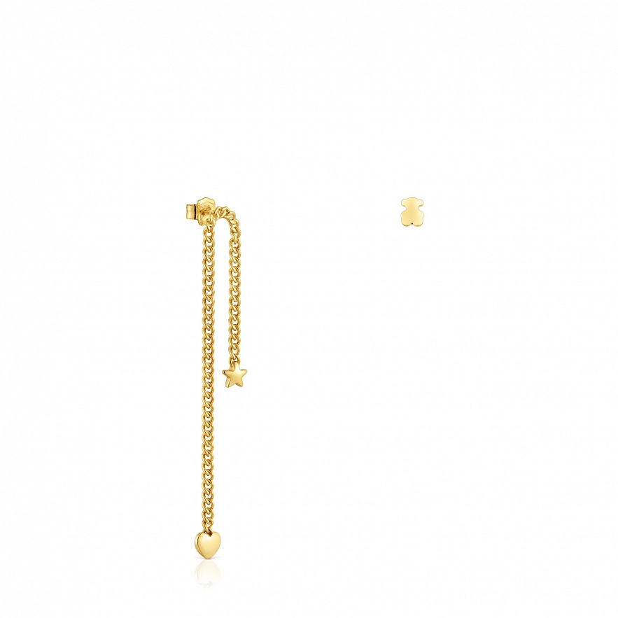 Сережки TOUS Bold Motif зі срібла 925 проби з покриттям Vermeil з мотивами. Довгі сережки: зірка та серце. Короткі сережки: ведмедик Розмір мотивів: 5,6 мм.