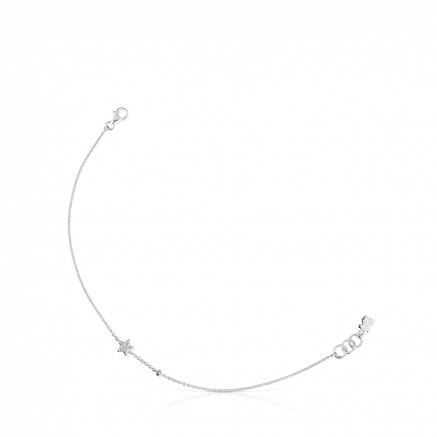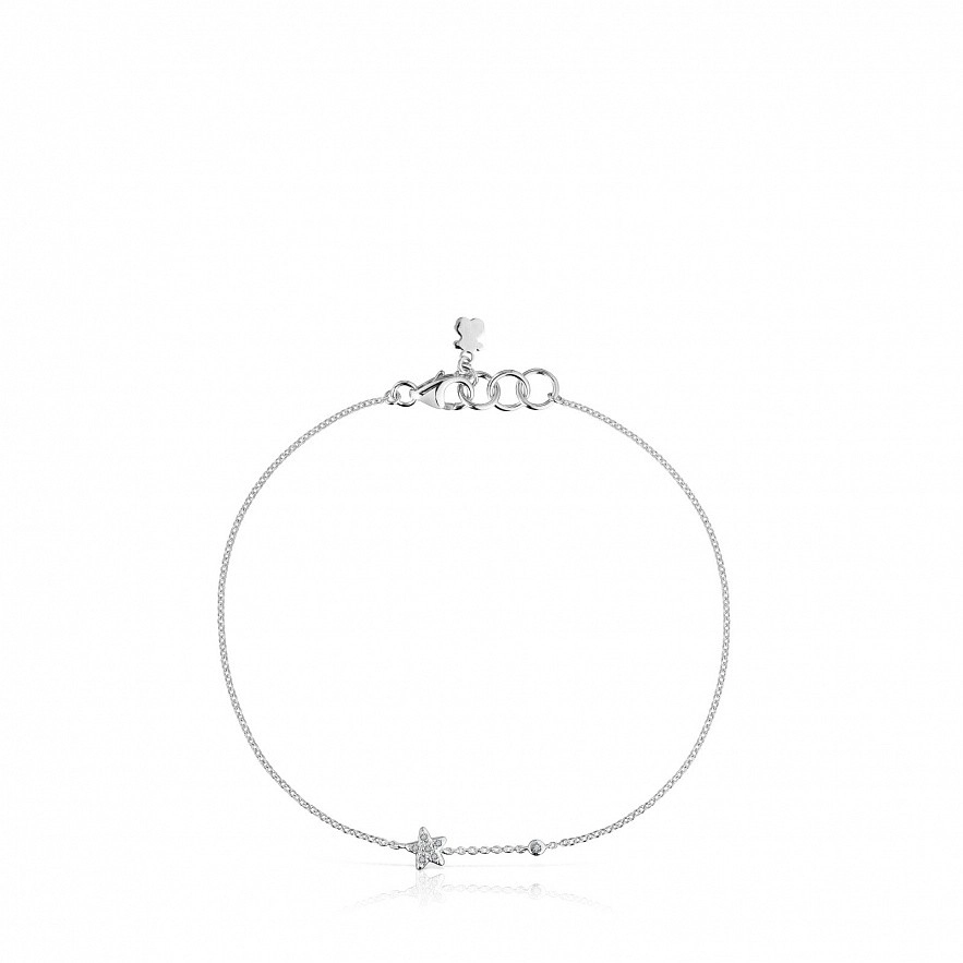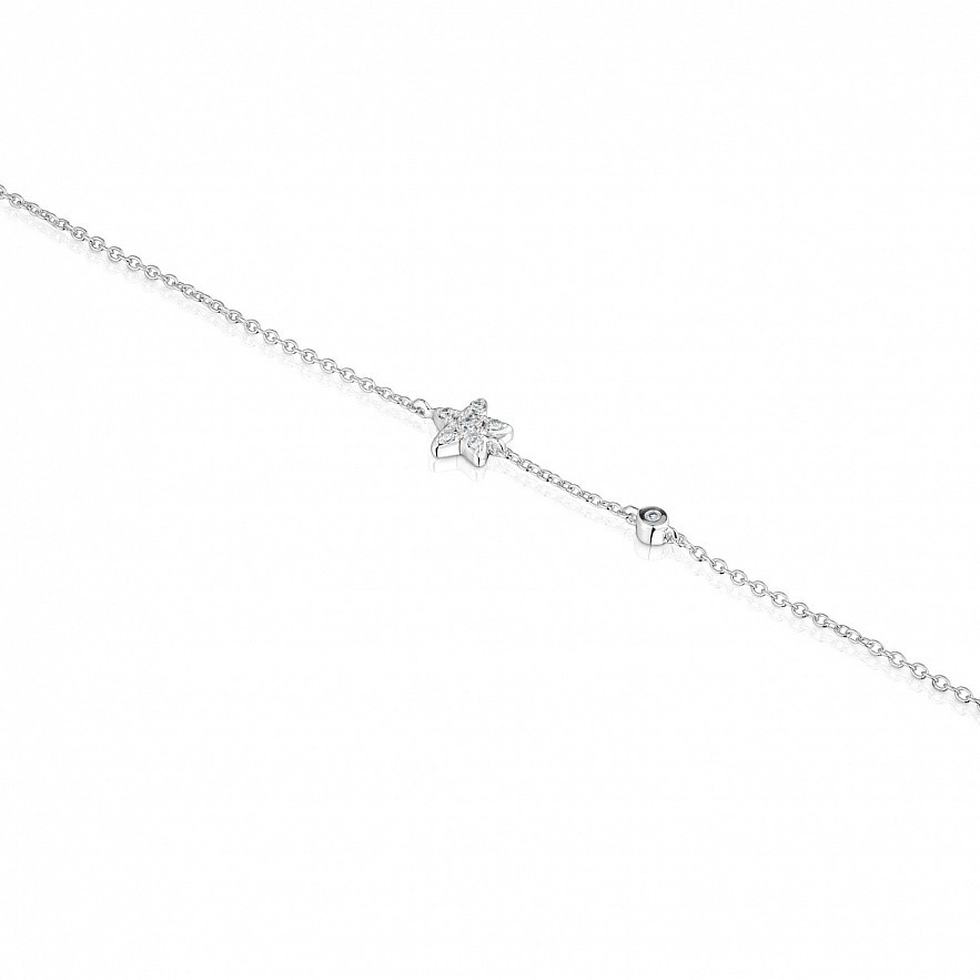Браслет-ланцюжок TOUS Grain з білого золота 18 карат з діамантами 0,019 карата та мотивом зірка. Розмір мотиву: 5,1мм. Якість діаманта: H/SI. Довжина браслета: 17,5см. Застібка лобстер. Колекція TOUS Grain гарантує повну відстежуваність походження золота та діамантів і має відповідну документацію на підтвердження цього.