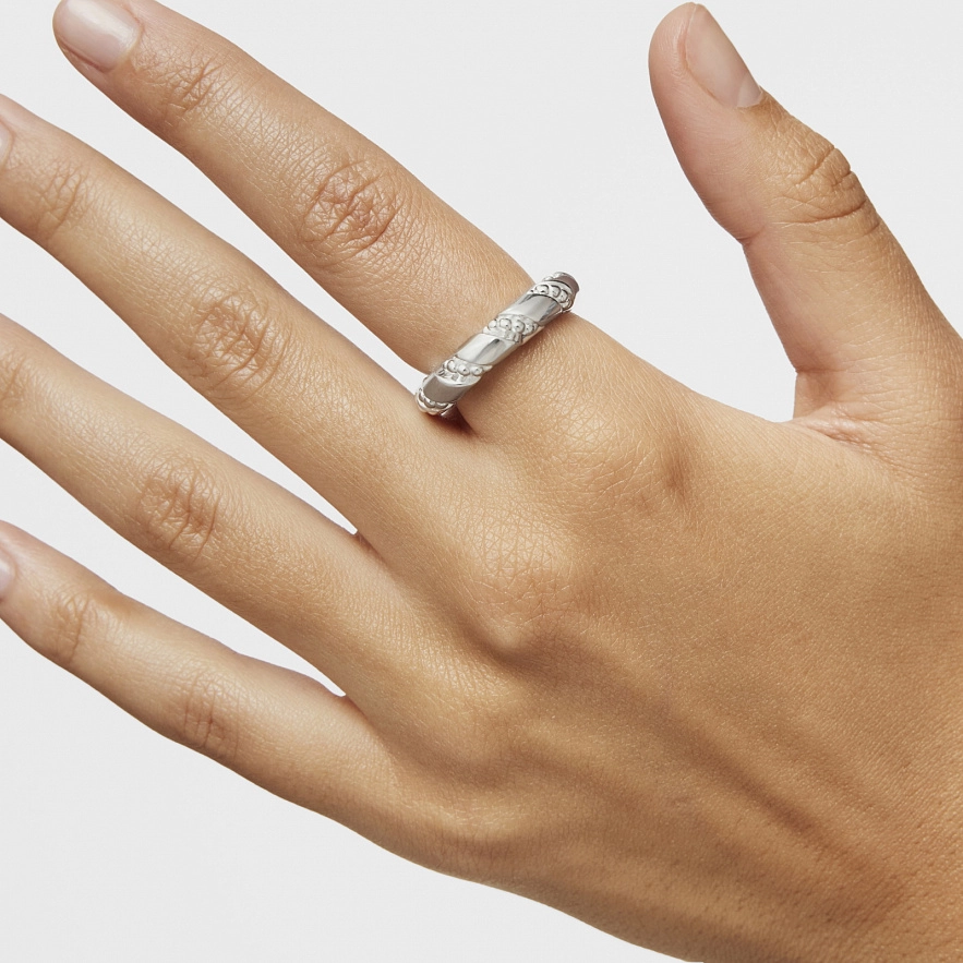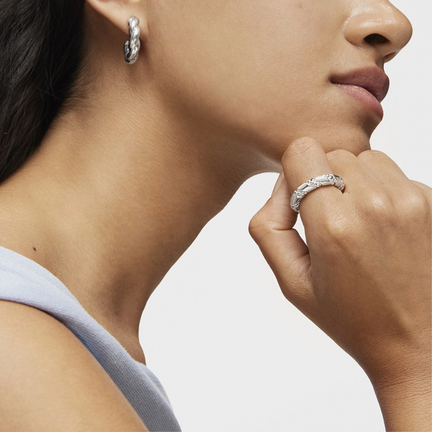 Каблучка TOUS Twisted зі срібла 925 проби з кульками-шармами. Товщина каблучки: 5 мм.