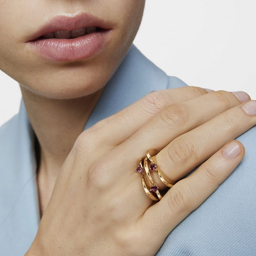Каблучка My Other Half велика зі срібла 925 проби з золотим покриттям 18 карат та родоліту.