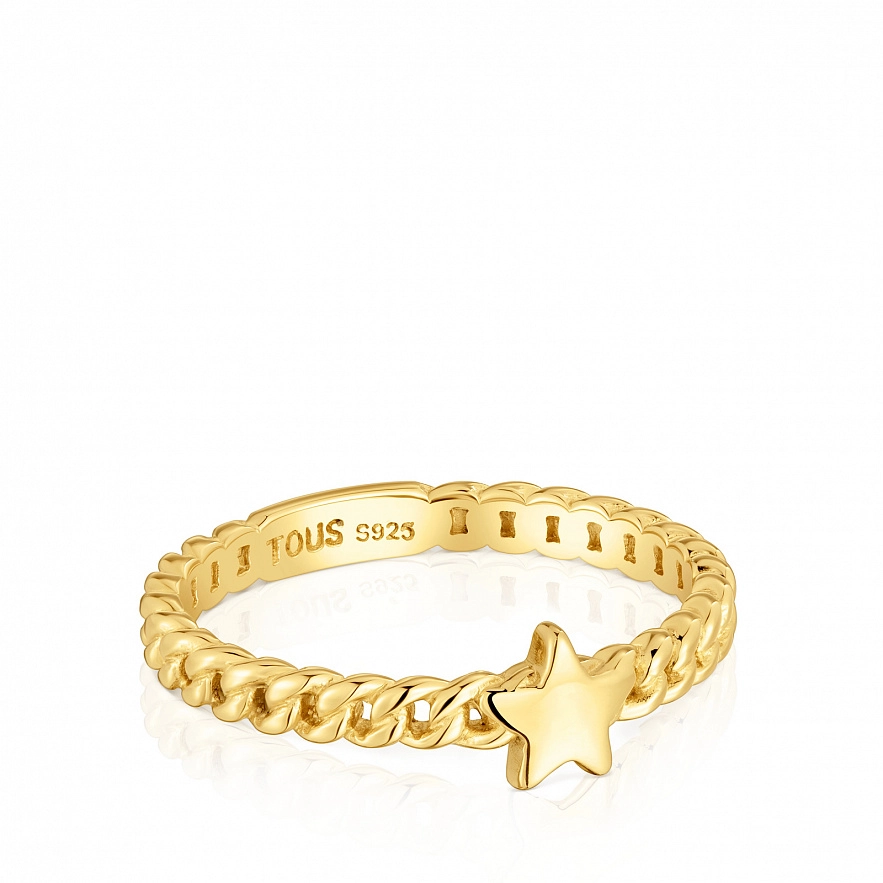 Каблучка TOUS Bold Motif зі срібла 925 проби з покриттям Vermeil та зоряним мотивом. Розмір мотиву: 5,6 мм. Товщина каблучки: 1,6 мм. Ширина каблучки: 2,6 мм.