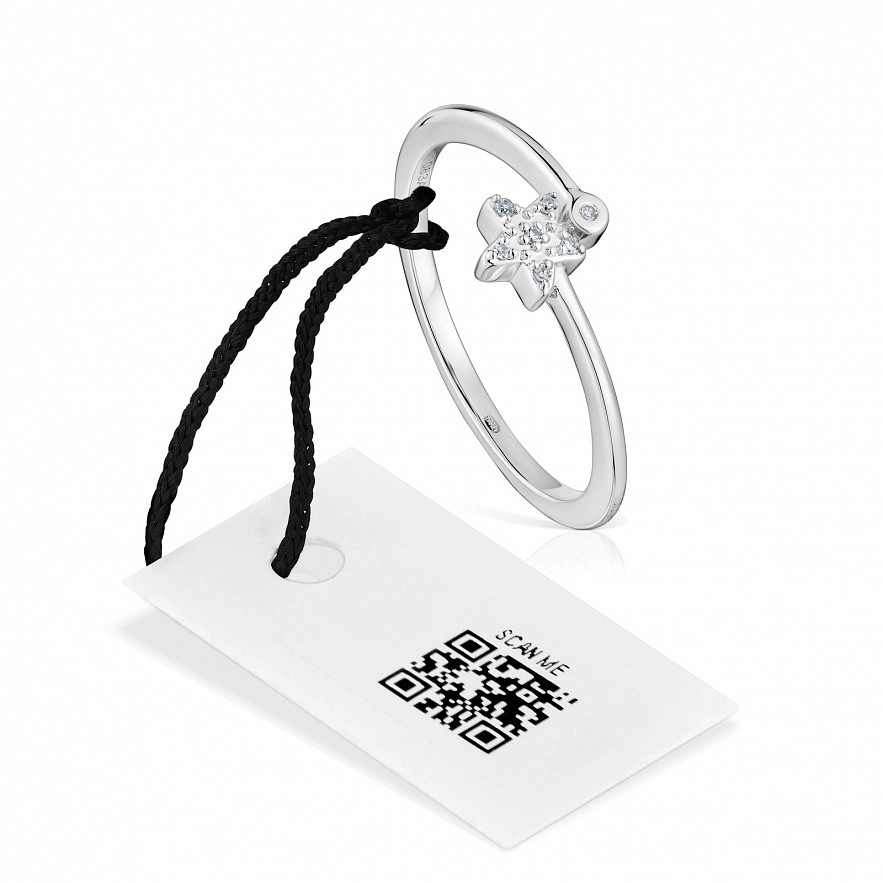 Каблучка TOUS Grain з білого золота 18 карат з діамантами 0,018 карата та мотивами зірок. Якість діаманта: H/SI. Розмір деталі: 5,1мм. Висота кільця: 2мм. Товщина каблучки: 1,35мм. Колекція TOUS Grain гарантує повну відстежуваність походження золота та діамантів і має відповідну документацію на підтвердження цього.