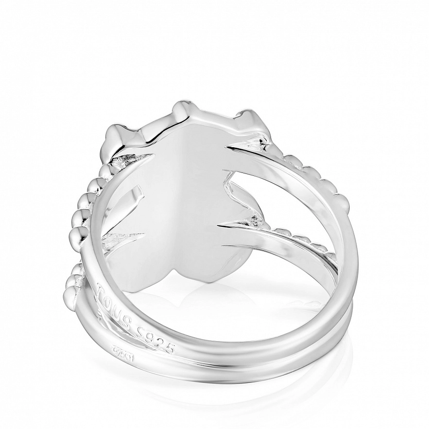 Каблучка TOUS Grain зі срібла 925 проби з мотивом ведмедика. Розмір ведмедика: 15 мм. Ширина каблучки: 15 мм. Товщина каблучки: 1,75 мм.