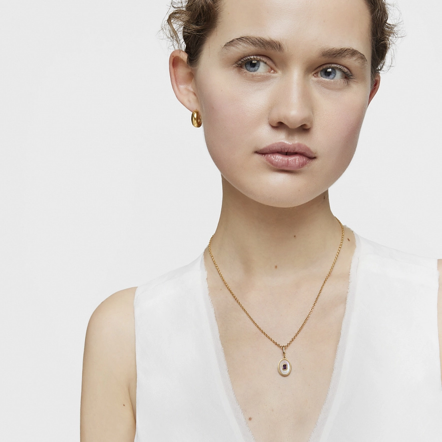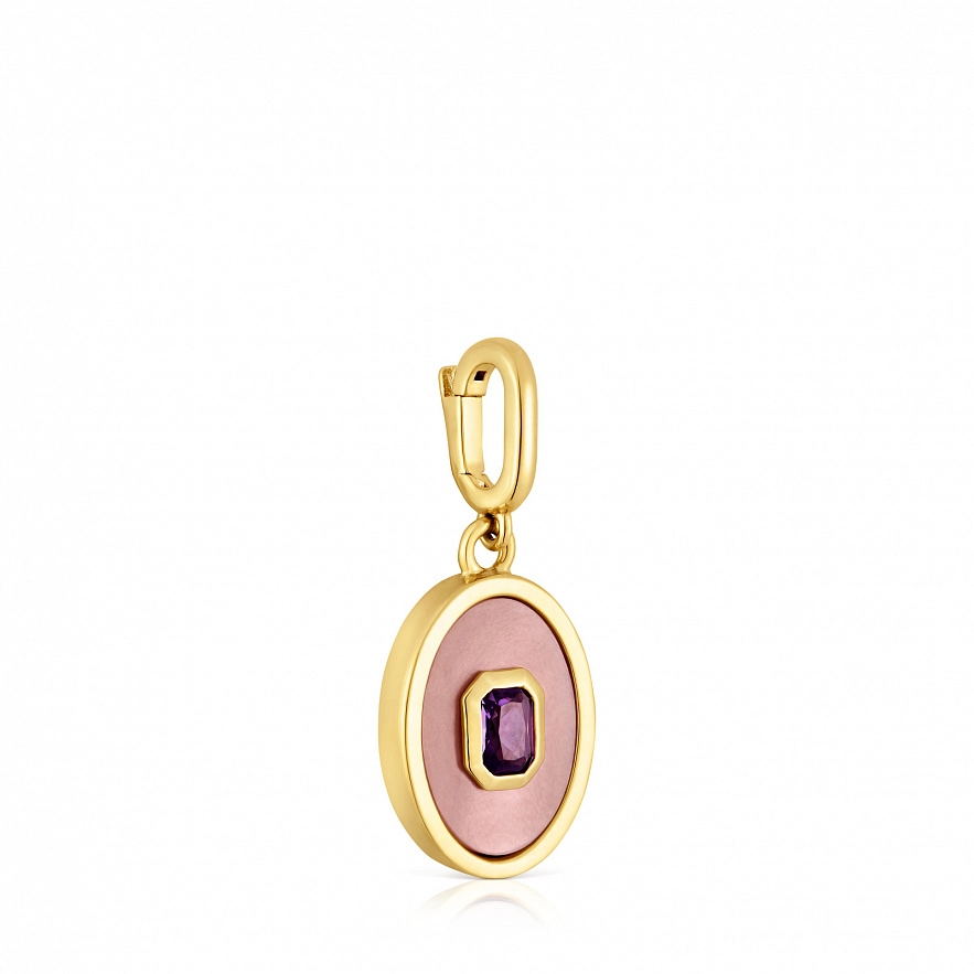 Кулон TOUS Medallions з покриттям із 18-каратного золота срібла 925 проби. У центрі рожевий овальний перламутр 12,8 х 9,2 мм, в центрі - восьмикутний аметист 4,4 х 3,2 мм. Розмір кулона: 15 мм. Цей виріб не включає в себе ланцюжок.