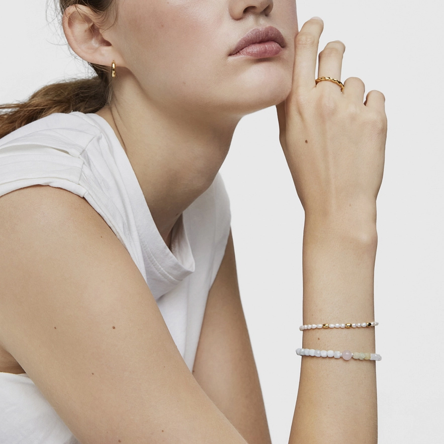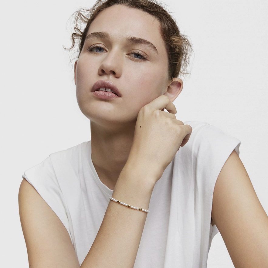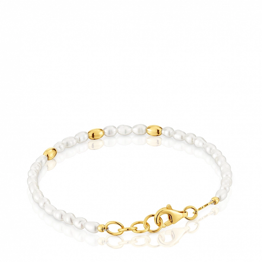 Браслет TOUS Gloss зі срібла 925 проби з покриттям Vermeil з культивованими прісноводними перлами. Розмір культивованих перлин: 4,3 мм. Довжина браслета: 17,5 см. Застібка лобстер.