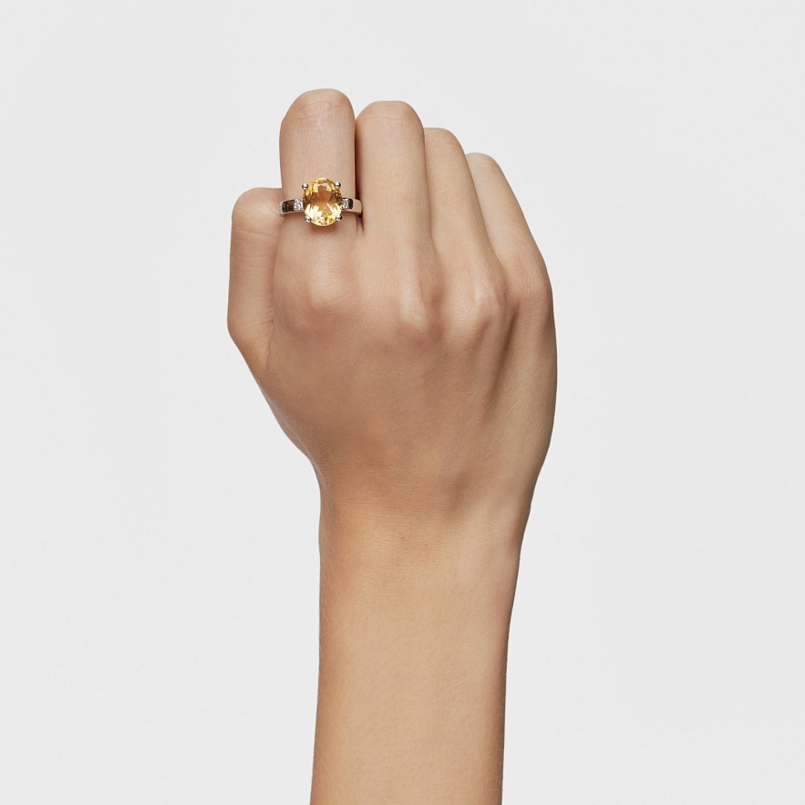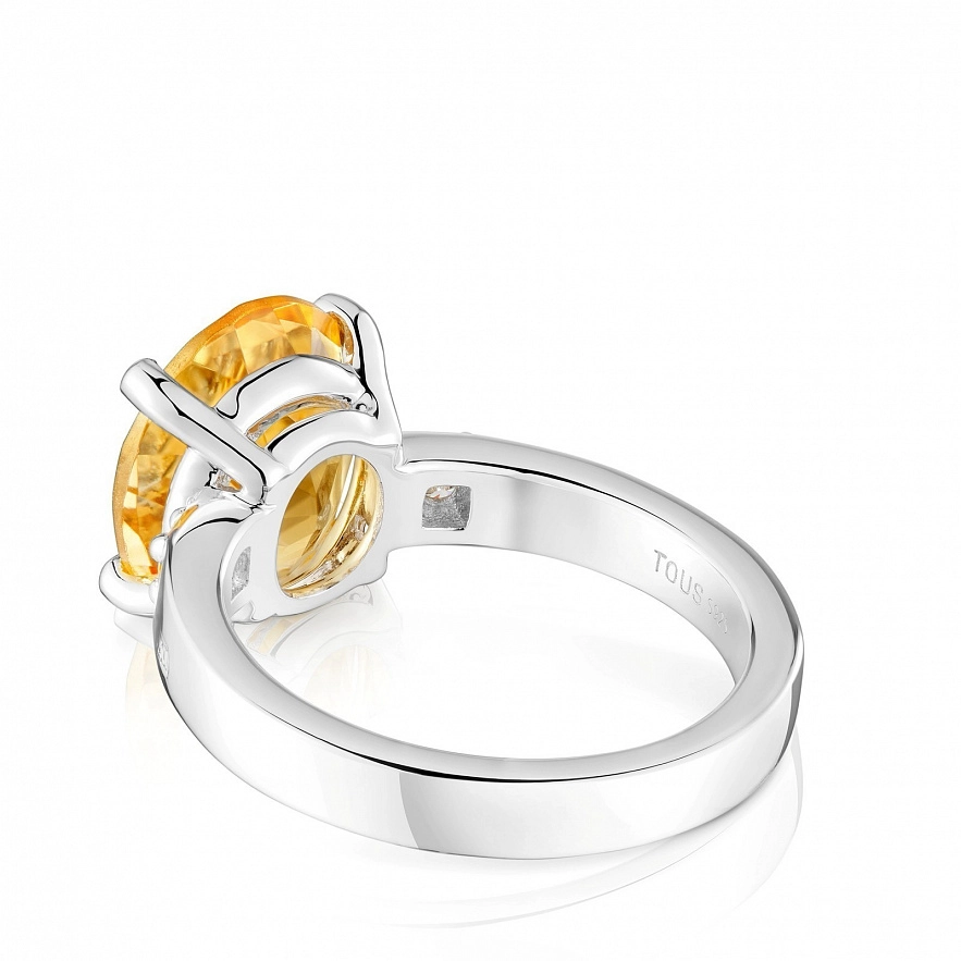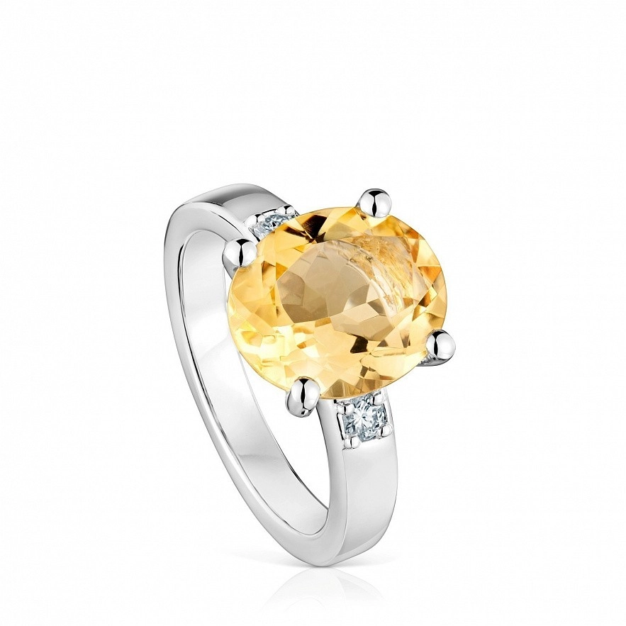 Каблучка TOUS Basic Colors зі срібла з діамантами 0,12 карат та цитрином. Якість діамантів: H/SI. Розмір каменю: 10 х 12 мм. Товщина каблучки: 2 мм. Ширина каблучки: 3 мм.