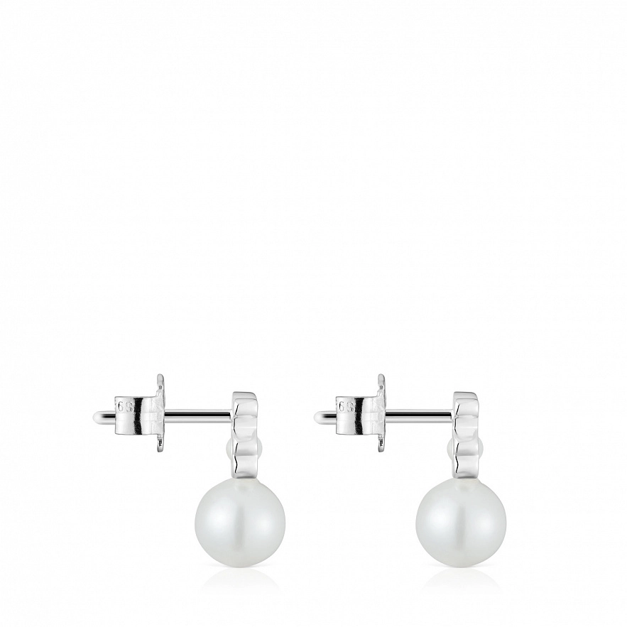 Сережки TOUS I-Bear зі срібла 925 проби з культивованими перлинами. Розмір культивованих перлин: 2-2,5 мм та 6-6,5 мм. Розмір сережок: 10 мм.