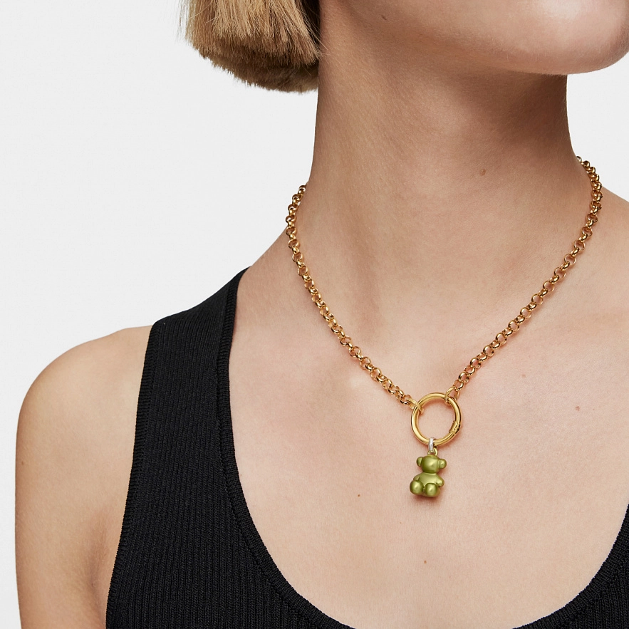 Середній кулон TOUS Bold Bear зі сталі лаймово-зеленого кольору із застібкою зі срібла 925 проби. Розмір ведмедика: 16 мм. Цей виріб не включає ланцюжок.