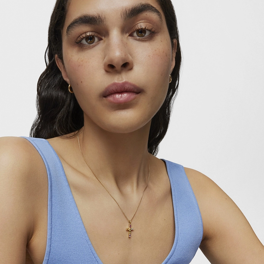 Кулон TOUS Basics з жовтого золота 18 карат з дорогоцінними каменями огранки «маркіза» розміром 4,5 мм х 2,5 мм. Камені: цитрин, перидот, аметист, блакитний топаз та родоліт. Розмір кулона: 18 мм. Ланцюжок до комплекту не входить.