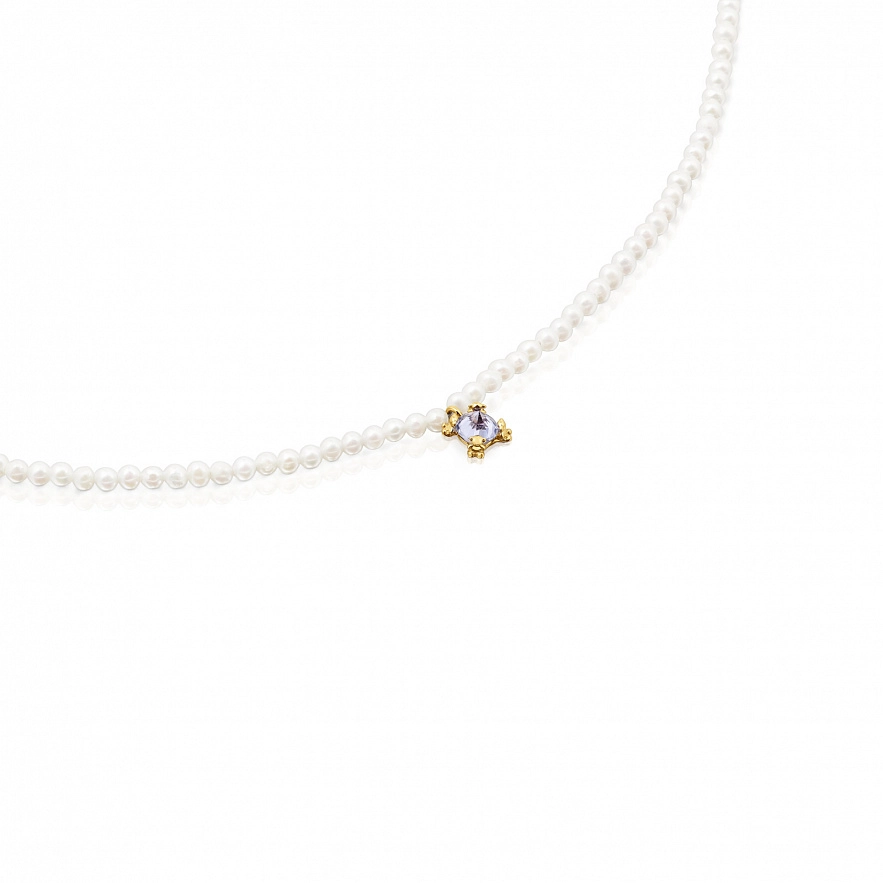 Намисто TOUS Color Pills з 18-каратного жовтого золота, культивованої прісноводної перлини та огранованого круглого танзаніту. Розмір дорогоцінного каменю: 4 мм. Розмір культивованої перлини: 2-2,5 мм. Довжина намиста: 40 см. Застібка - пружинне кільце.