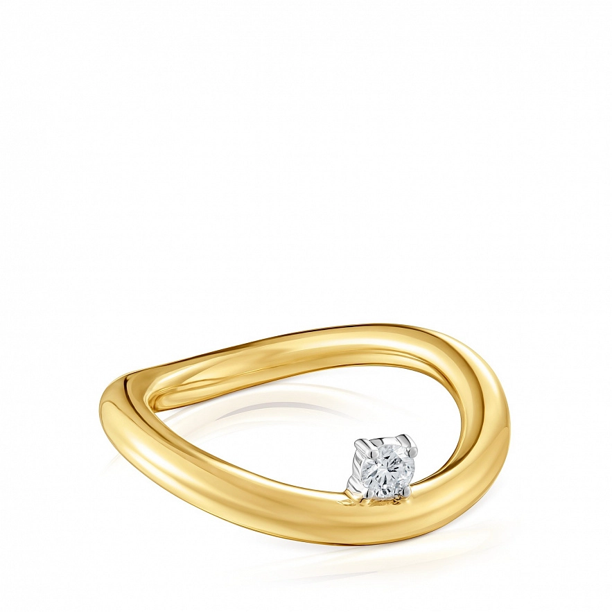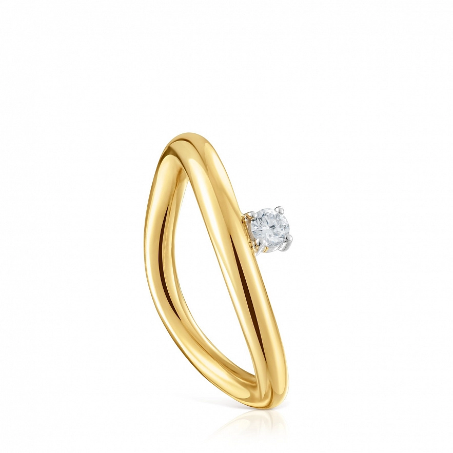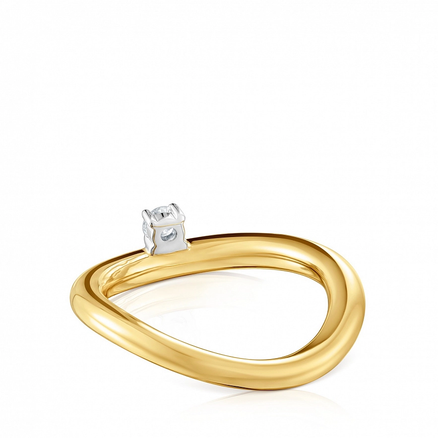 Каблучка TOUS New Hav з градіентом з жовтого золота 18 карат з діамантом 0.10 карата в оправі «кіготь» з білого золота 18 карат. Якість діаманта: H/SI. Ширина каблучки: 3 мм.
