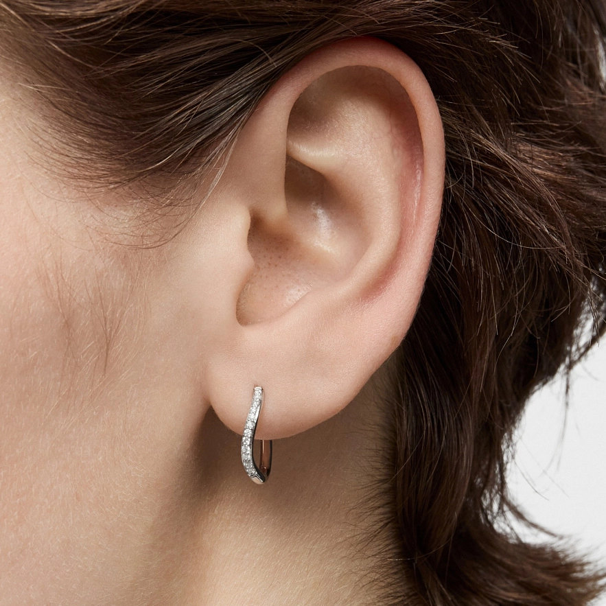 Сережки-кільця TOUS New Hav з білого золота 18 карат з діамантами 0,13 карата. Якість діамантів: H/SI. Розмір сережок: 11 мм.