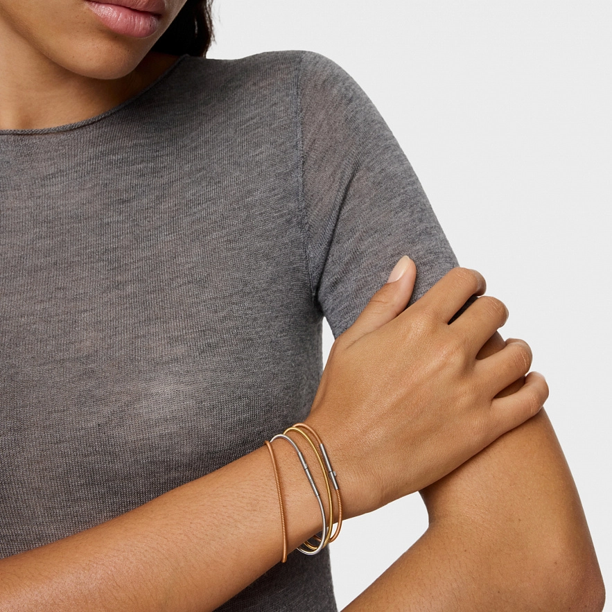 Браслет TOUS Mesh Tube з IP-сталі помаранчевого кольору. Товщина браслета: 2 мм. Довжина браслета: 17 см. Подвійна застібка-кліпса.
