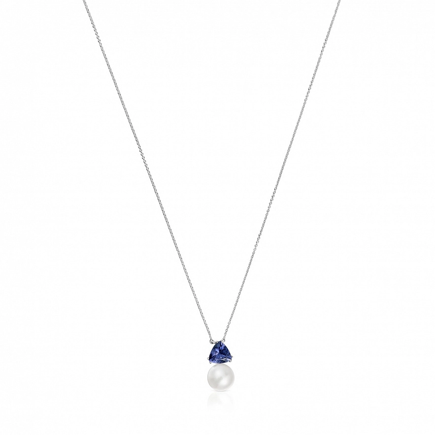 Намисто TOUS Ivette з білого золота 18 карат з іолітом та культивованою прісноводною перлиною. Розмір дорогоцінного каменю: 7 мм. Розмір культивованої перлини: 8 мм. Довжина кольє: 45 см. Застібка лобстер.