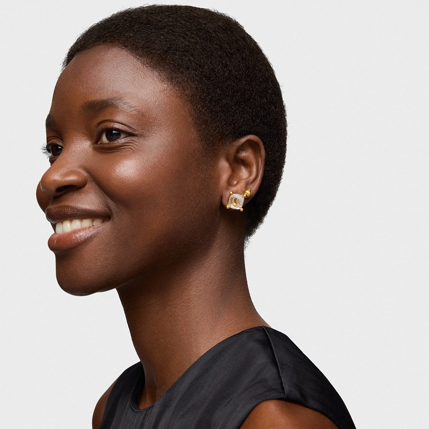Сережки TOUS Color White зі срібла 925 проби з покриттям Vermeil та огранованим гірським кришталевим кварцем у формі квадрату. Розмір сережок: 11 мм.