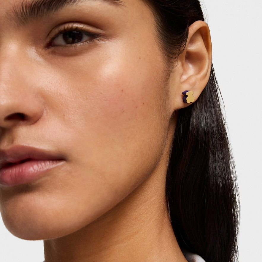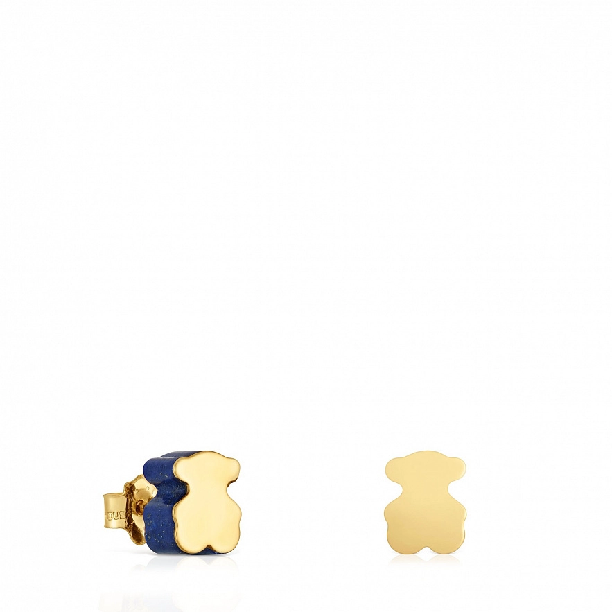 Сережки TOUS 1950 з жовтого золота 18 карат з огранованим лазуритом у формі ведмедика. Розмір сережок: 8 мм.