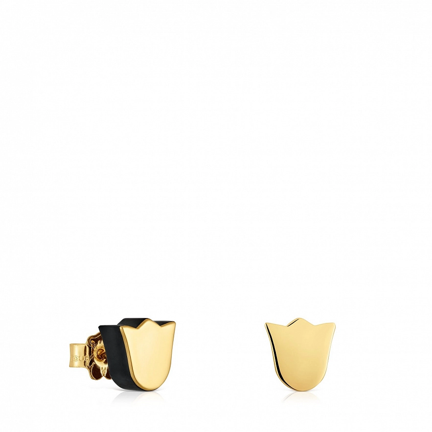 Сережки TOUS 1950 з жовтого золота 18 карат з огранованим оніксом у формі тюльпана. Розмір сережок: 8 мм.