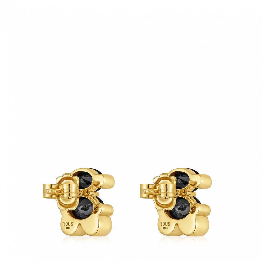 Сережки TOUS Color Bear зі срібла 925 проби з покриттям Vermeil ,з огранованим оніксом у формі ведмедика. Розмір сережки: 14 мм.