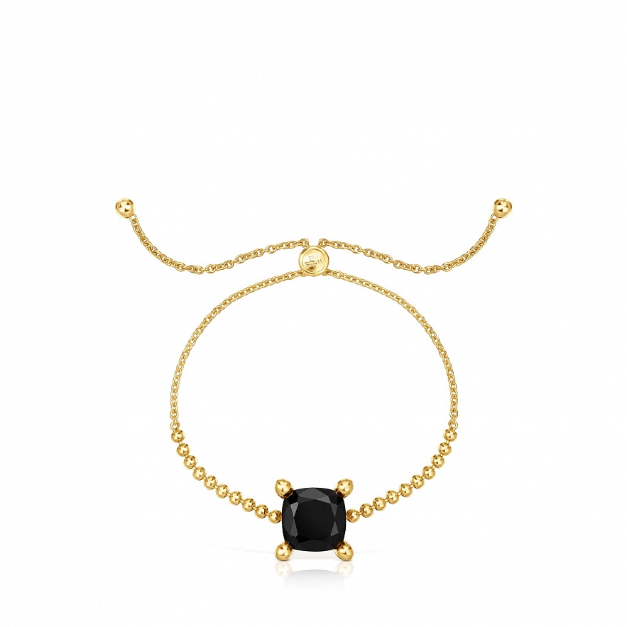 Браслет TOUS Color Black зі срібла 925 проби з покриттям Vermeil , з деталями у формі кулі та квадратним огранованим оніксом. Розмір дорогоцінного каменю: 11 мм. Розмір деталей: 2,6 мм. Довжина браслета: 17 см. Застібка-слайдер.