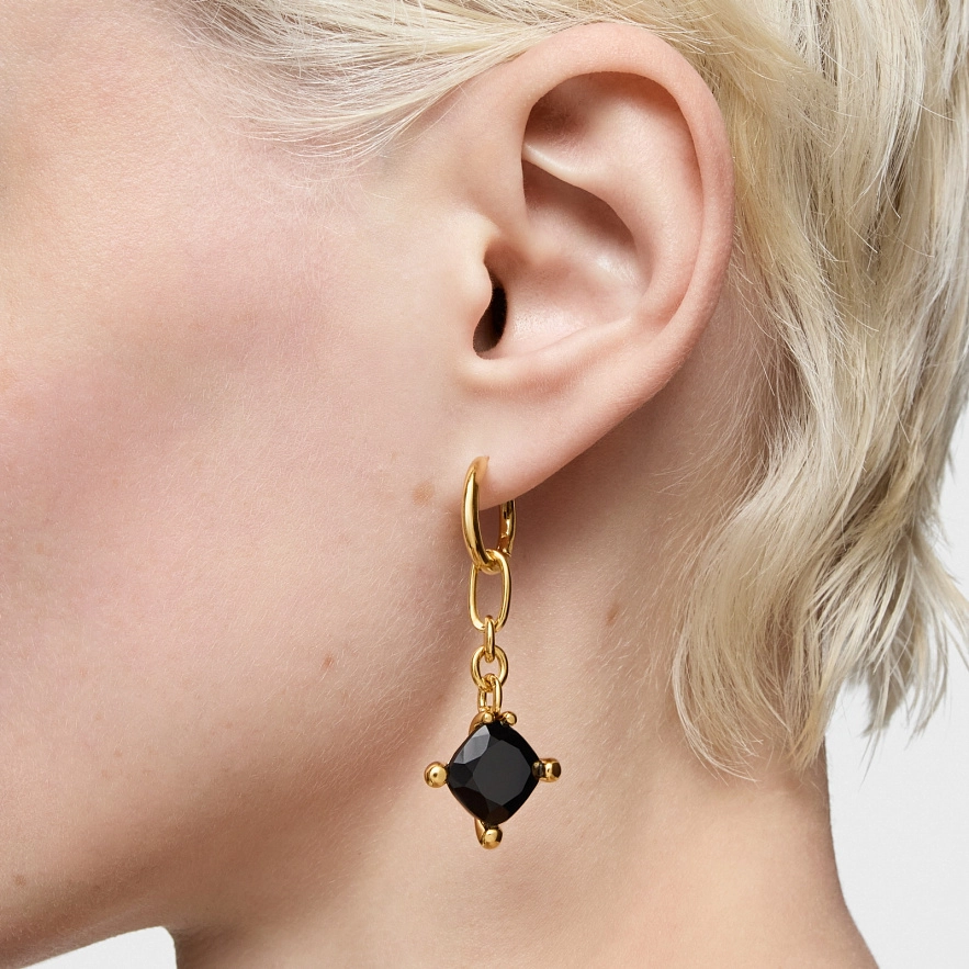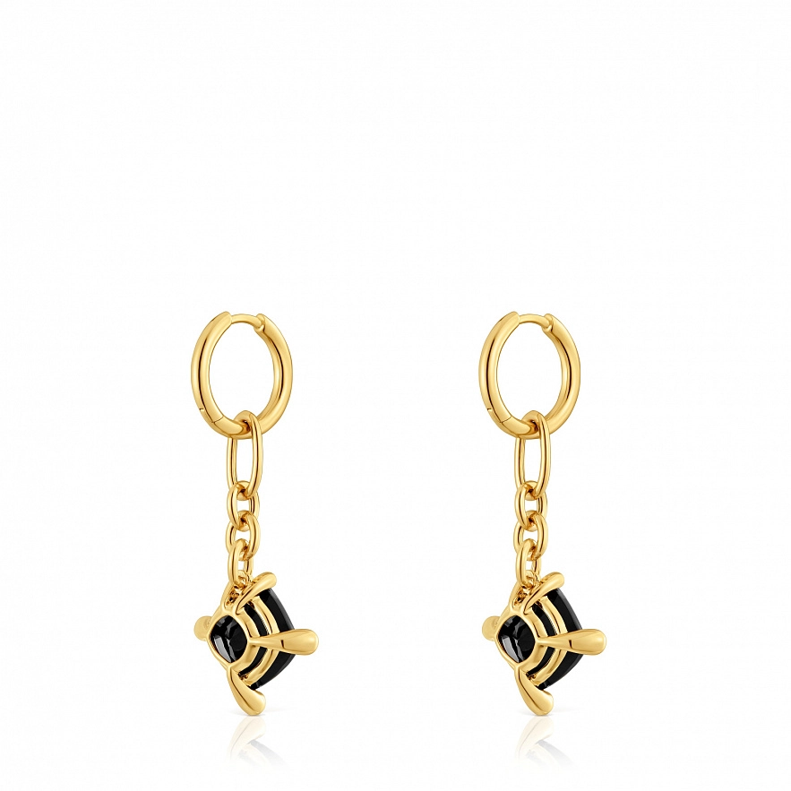 Cережки-кільця TOUS Color Black зі срібла 925 проби з покриттям Vermeil та квадратним огранованим оніксом. Розмір дорогоцінного каменю: 11 мм. Розмір обруча: 11 мм.