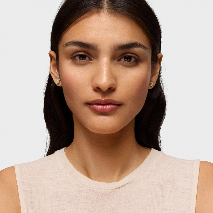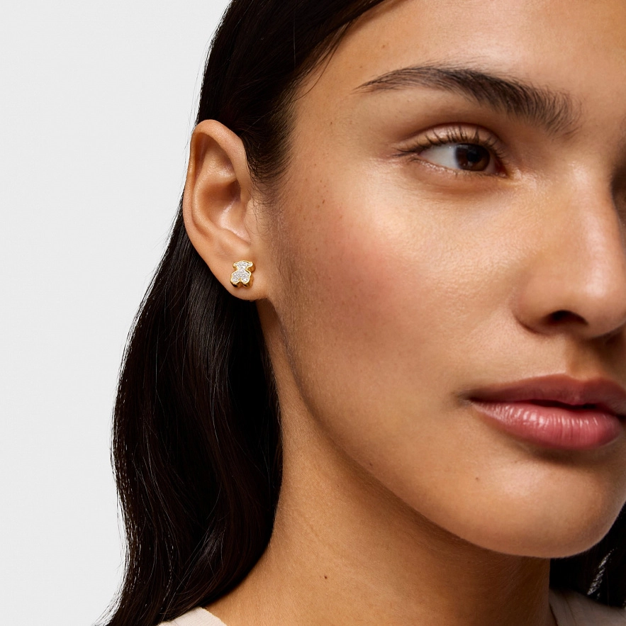 Сережки-ведмедики TOUS 1950 зі срібла 925 проби з покриттям Vermeil і діамантами одинарного огранювання 0,15 карат. Якість діамантів: 8x8 GH/SI. Розмір сережок: 9 мм.