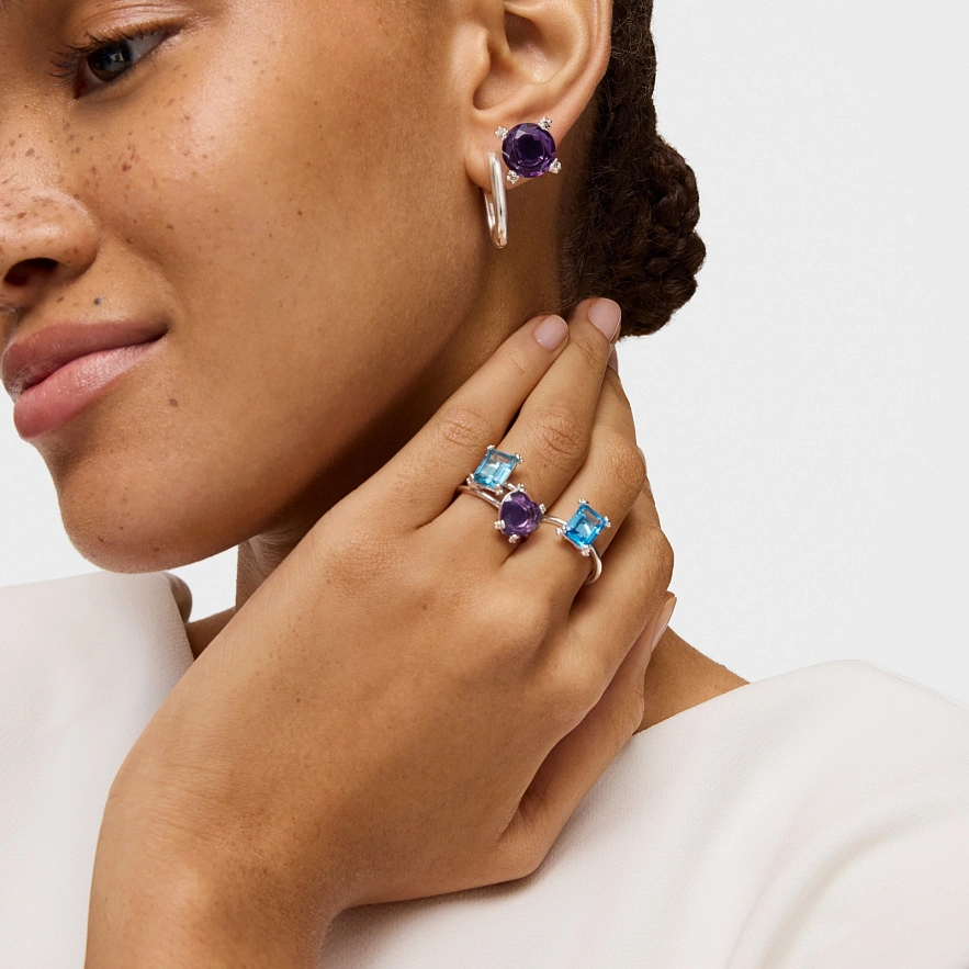 Каблучка TOUS Color Pills зі срібла 925 проби з огранованим топазом прямокутної форми. Розмір каменю: 7 х 9,5 мм. Висота кулона: 3,7 мм. Товщина каблучки: 1,4 мм.