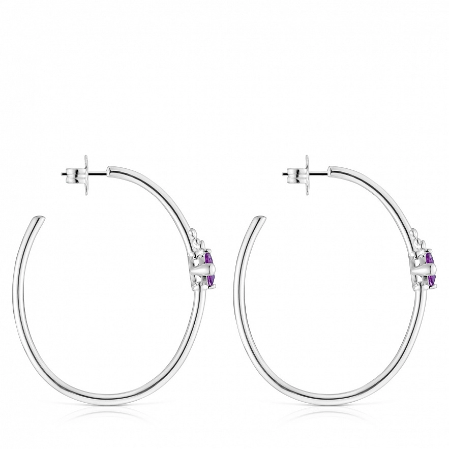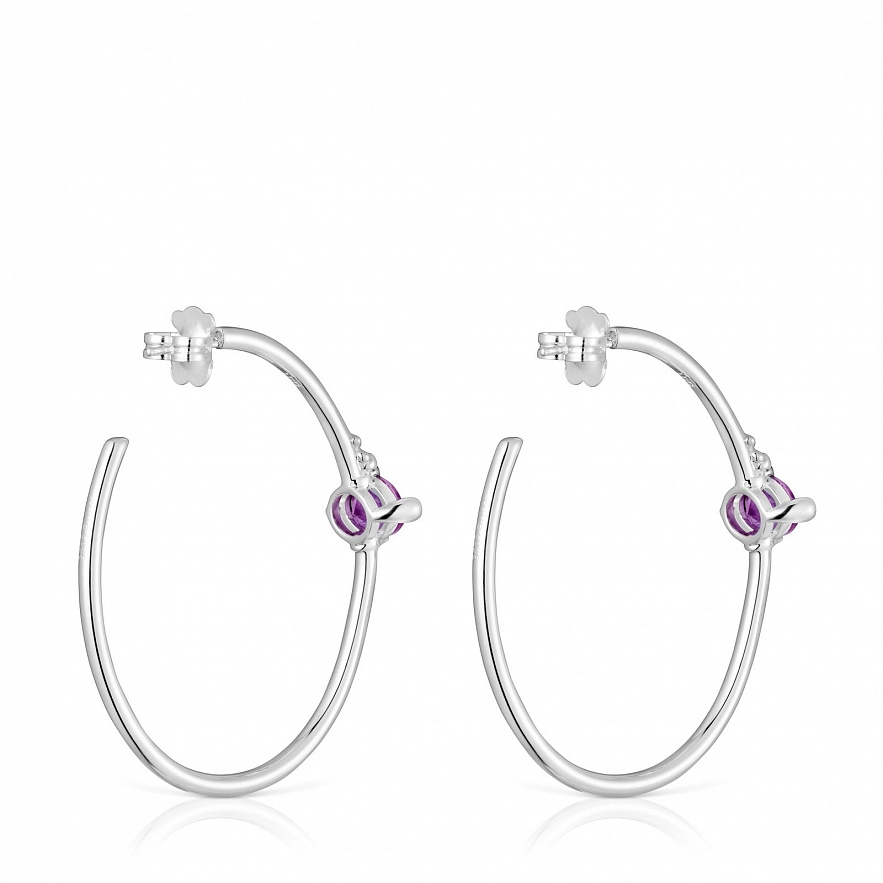 Сережки TOUS Color Lab зі срібла 925 проби та синтетичного огранованого сапфіру бузкового кольору овального огранювання, вирощеного в лабораторії. Розмір каменю: 9 мм. Розмір сережок: 45 х 36 см. Примітка: Виріб створено з використанням лабораторно вирощених дорогоцінних каменів.