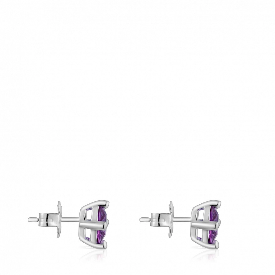 Сережки TOUS Color Lab зі срібла 925 проби та синтетичного сапфіру бузкового кольору з огранюванням, вирощеного в лабораторії. Розмір каменю: 7 мм. Примітка: Виріб створено з використанням лабораторно вирощених дорогоцінних каменів.