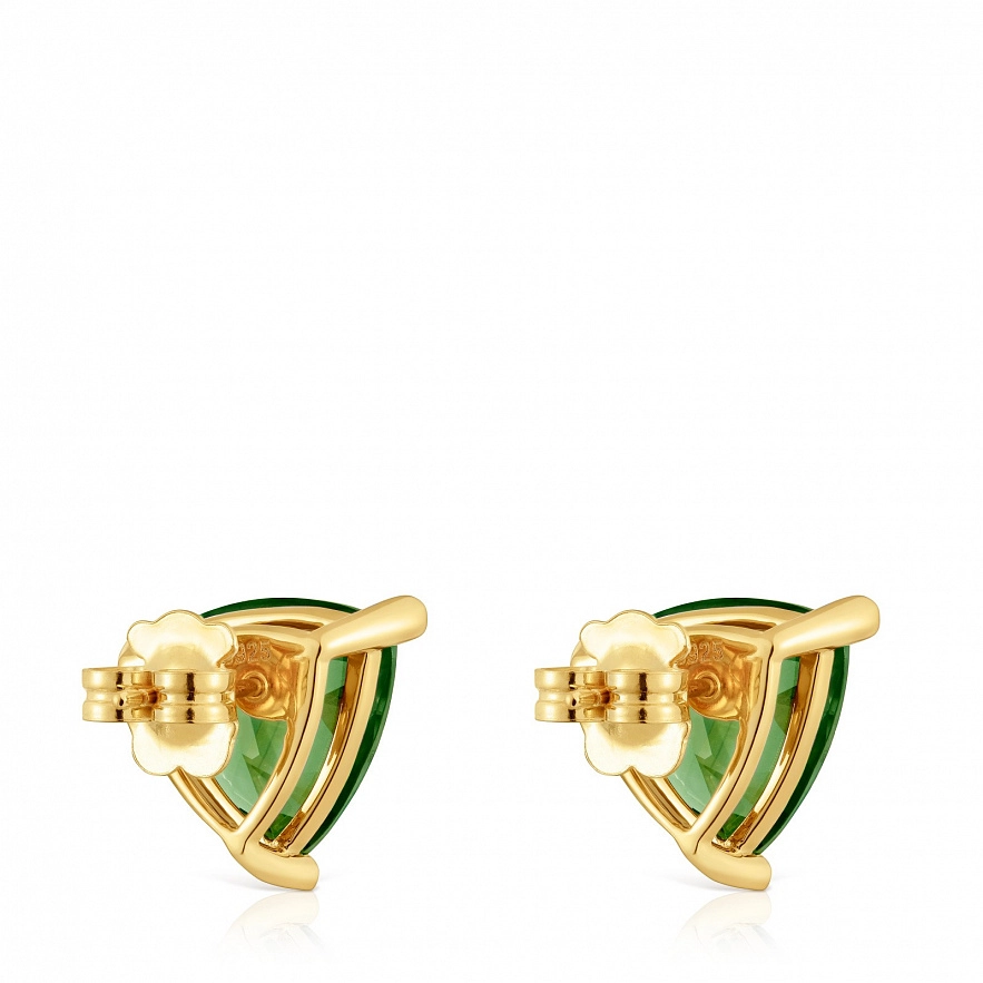 Сережки TOUS Color Lab зі срібла 925 проби з покриттям Vermeil , з огранованою синтетичною шпінеллю зеленого кольору, ограновування «трильйон», вирощено в лабораторії. Розмір дорогоцінного каменю: 14 мм.Примітка: Виріб створено з використанням лабораторно вирощених дорогоцінних каменів.