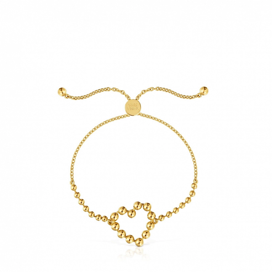 Браслет TOUS Sugar Party зі срібла 925 проби з покриттям Vermeil та деталями у вигляді серця. Розмір деталей: 3,5 мм. Розмір мотиву: 18x18.46 мм. Довжина браслета: 22 см. Застібка-слайдер.