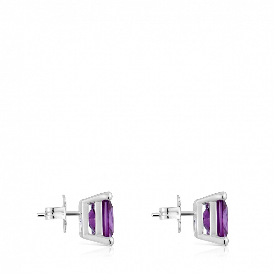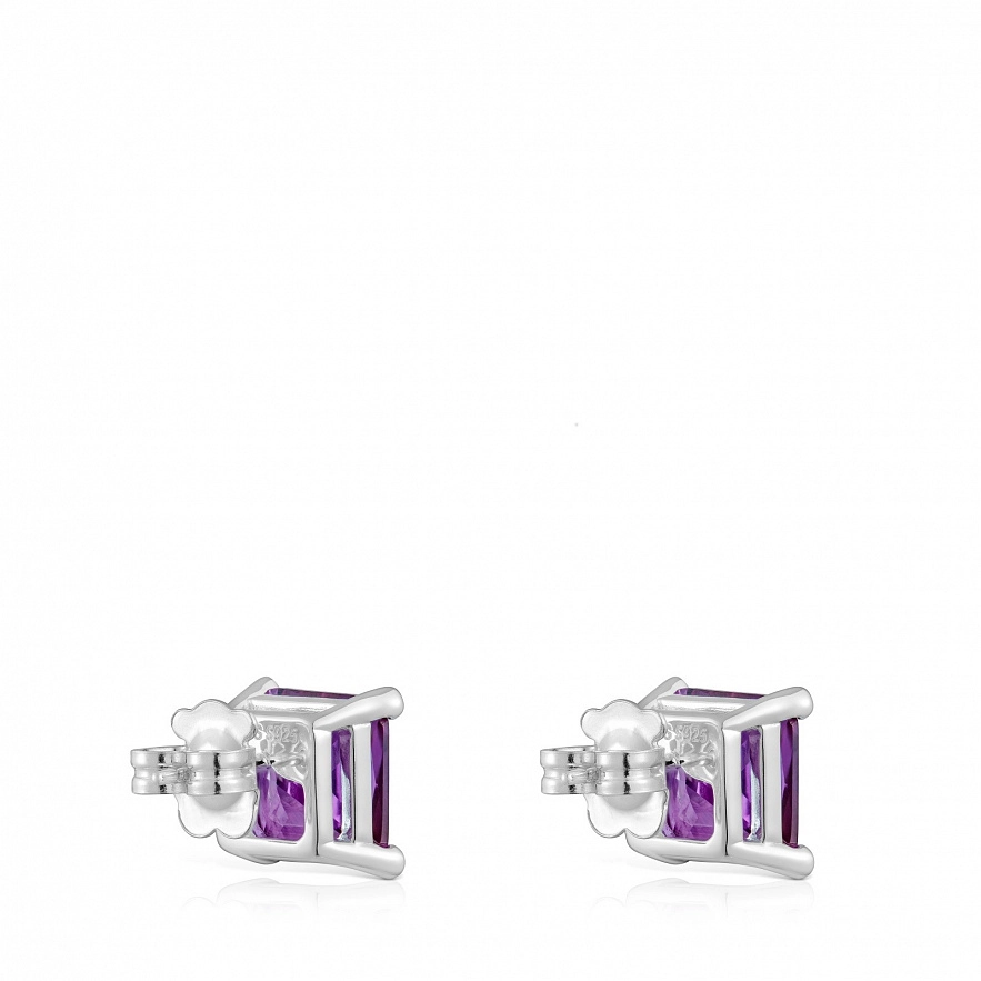 Сережки TOUS Color Lab зі срібла 925 проби та синтетичного сапфіру бузкового кольору з огранюванням, вирощеного в лабораторії. Розмір каменю: 11 мм. Примітка: Виріб створено з використанням лабораторно вирощених дорогоцінних каменів.