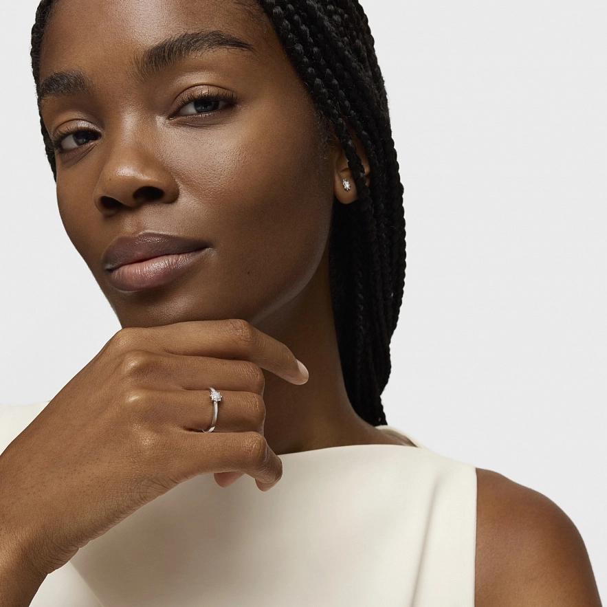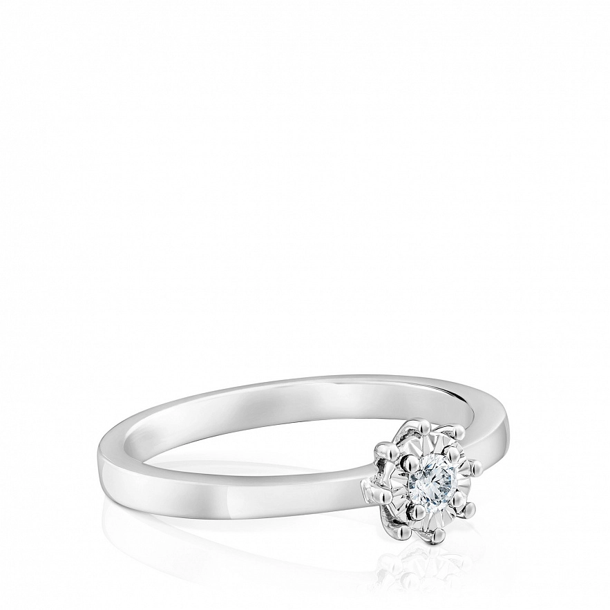 Каблучка TOUS Les Classiques з білого золота 18 карат з діамантовою розеткою 0.10 карата H/SI . Розмір розетки: 4.5 мм. Техніка виготовлення: Мікроф'южн.