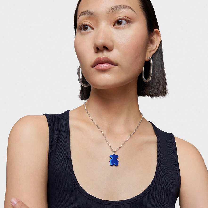 Кулон TOUS Sweet Dolls у формі ведмедика із синьої сталі та кільцем зі срібла 925 проби. Розмір ведмедика: 22 мм. Цей виріб не включає ланцюжок.