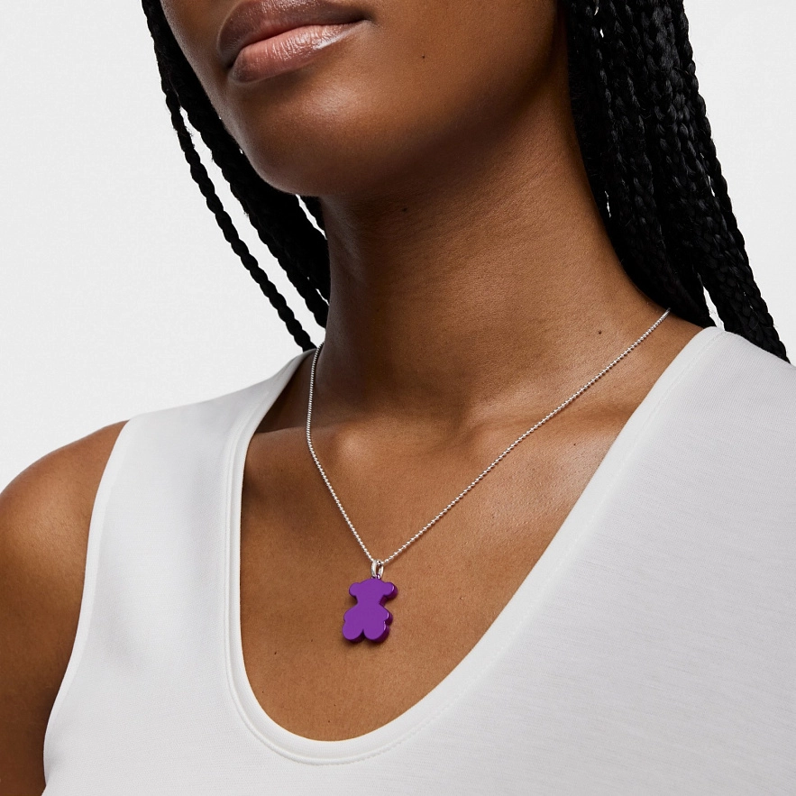 Кулон TOUS Sweet Dolls у формі ведмедика зі сталі бузкового кольору та кільцем зі срібла 925 проби. Розмір ведмедика: 22 мм. Цей виріб не включає в себе ланцюжок.