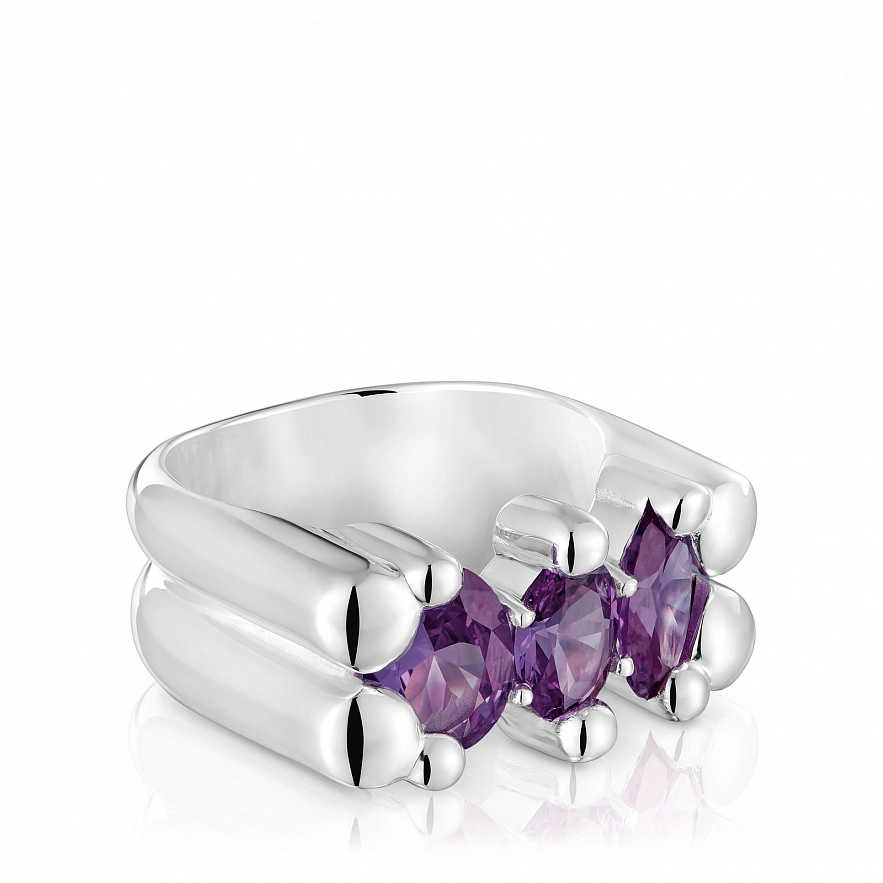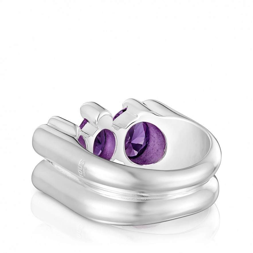 Каблучка TOUS Color Bear LGG зі срібла 925 проби та синтетичним сапфіром овального огранювання, вирощеним у лабораторії, бузкового кольору у формі ведмедика. Розмір мотиву: 22 мм. Примітка: Виріб створено з використанням лабораторно вирощених дорогоцінних каменів.