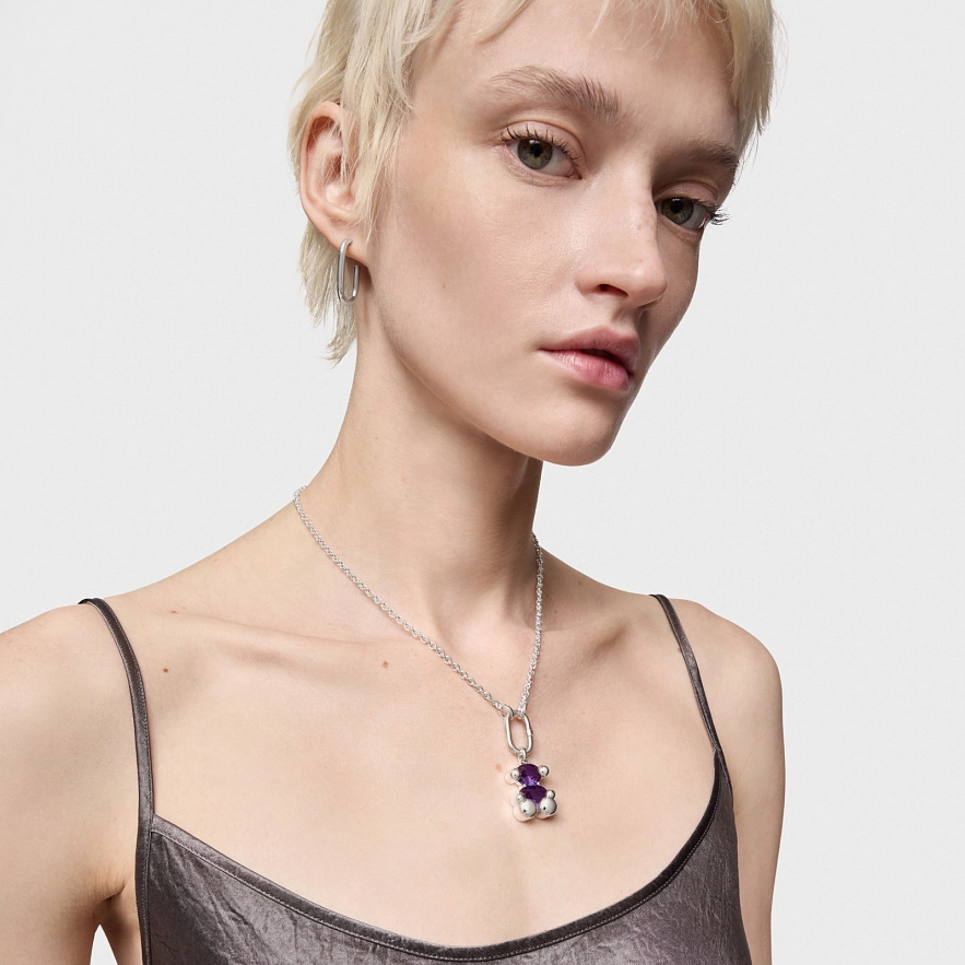 Кулон TOUS Color Bear LGG зі срібла 925 проби з синтетичним сапфіром бузкового кольору овального огранювання у формі ведмедя, вирощеного в лабораторії. Розмір мотиву: 23 мм. Цей виріб не включає ланцюжок. Примітка: Виріб створено з використанням лабораторно вирощених дорогоцінних каменів.