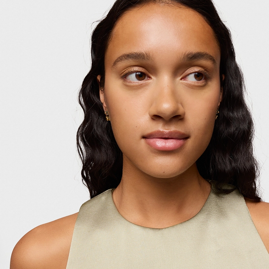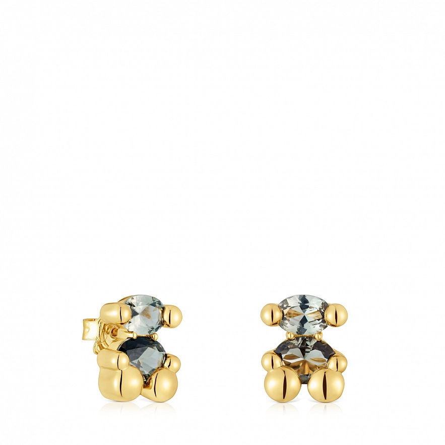 Сережки TOUS Color Bear LGG зі срібла 925 проби з покриттям Vermeil та синтетичною зеленою шпінеллю овального огранювання у формі ведмедика. Розмір сережок: 13 мм. Примітка: Виріб створено з використанням лабораторно вирощених дорогоцінних каменів.
